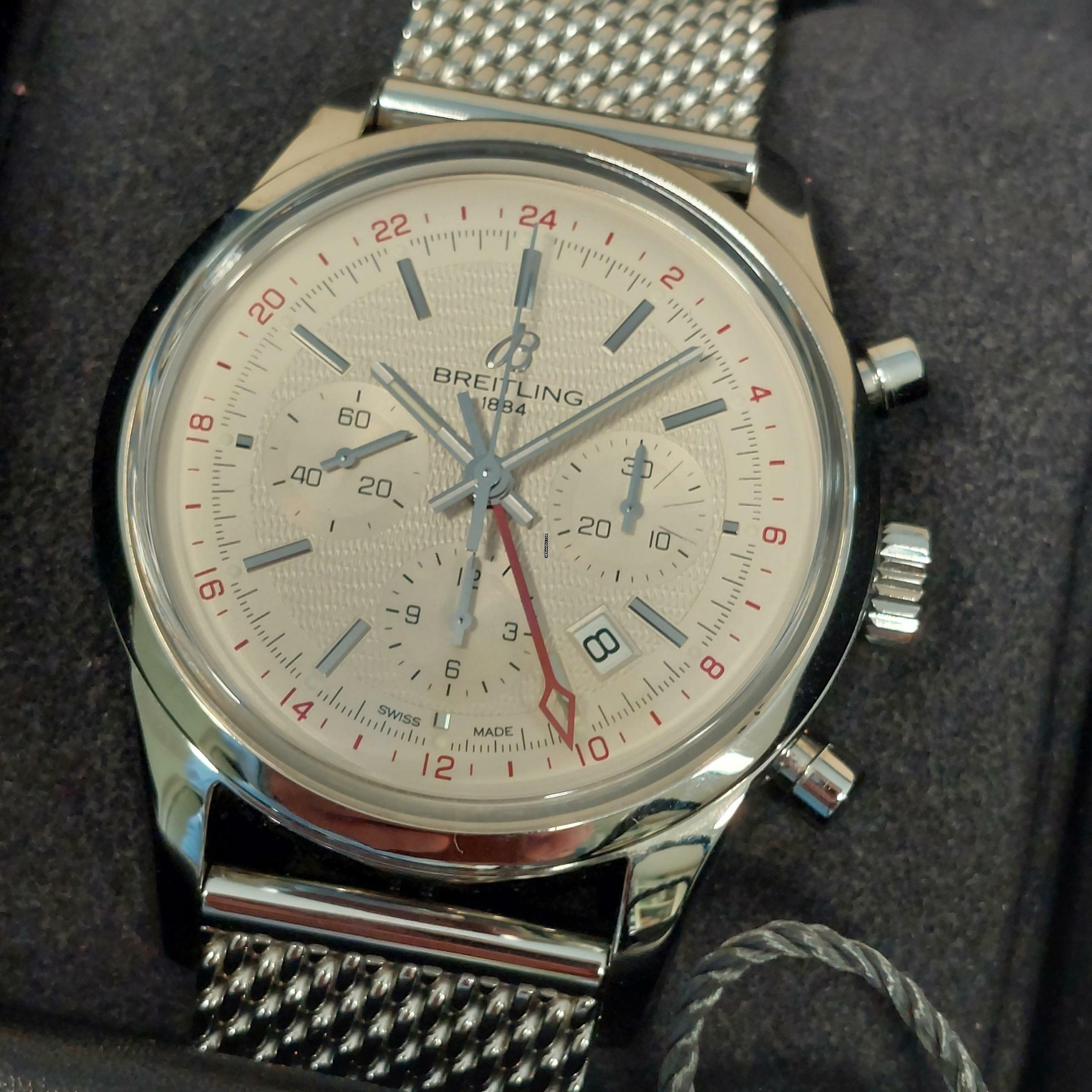 Diese Uhr ist in einem sehr guten Zustand und ist ein Sonderangebot von Clem Vercammen. Die Uhr wird mit einer Breitling Box geliefert, alle Papiere sind vorhanden. Diese Uhr kann in unserem Juweliergeschäft besichtigt werden
