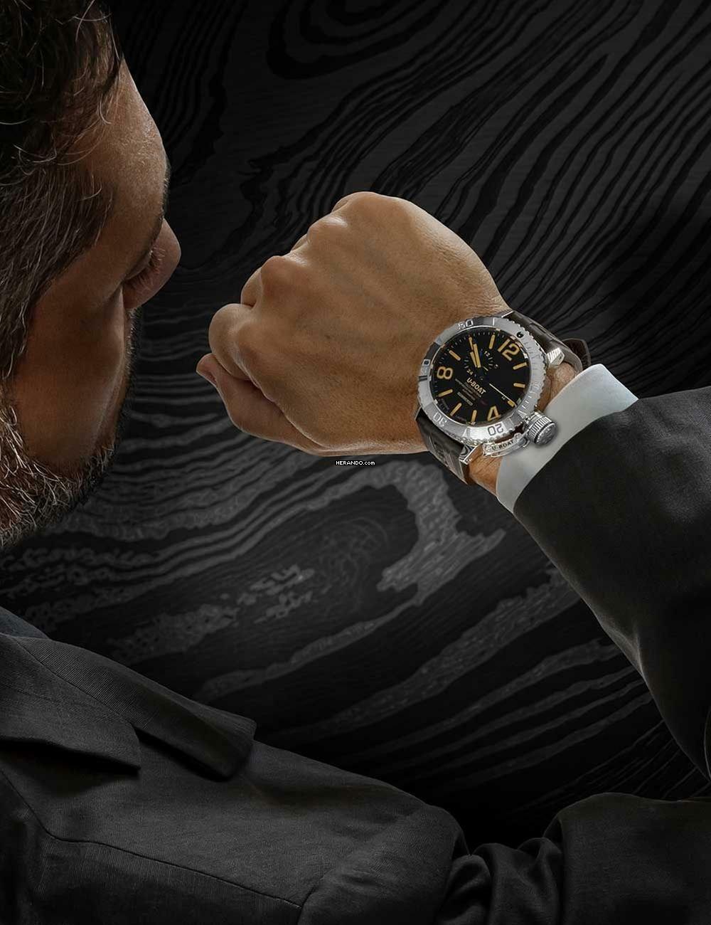 Die U-Boat Herrenuhr 9988 Ja, X / 99 ist ein sportlicher Begleiter aus der Modell-Serie Sommerso Damasco (right) Automatik 46mm 30ATM. Eine perfekte Wahl, wenn Sie einen Zeitmesser mit einem lebendigen Look suchen.