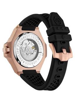 Zusätzliche Freude an Ihrer neuen Philipp Plein Uhr wird Ihnen das hochwertig verarbeitete Armband aus Silikon – Farbe: Schwarz – mit Dornschließe bereiten. Das Silikon-Armband bietet einen hohen Tragekomfort und kann bis zu einem maximalen Handgelenkumfang von 210 mm getragen werden.