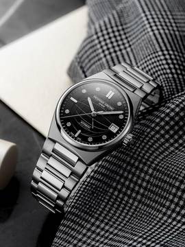 Zusätzliche Freude an Ihrer neuen Frederique Constant Uhr wird Ihnen das hochwertig verarbeitete Armband aus Edelstahl – Farbe: Silber – mit Schmetterlingsschließe bereiten. Das Edelstahl-Armband bietet einen hohen Tragekomfort und kann bis zu einem maximalen Handgelenkumfang von 180 mm getragen werden.