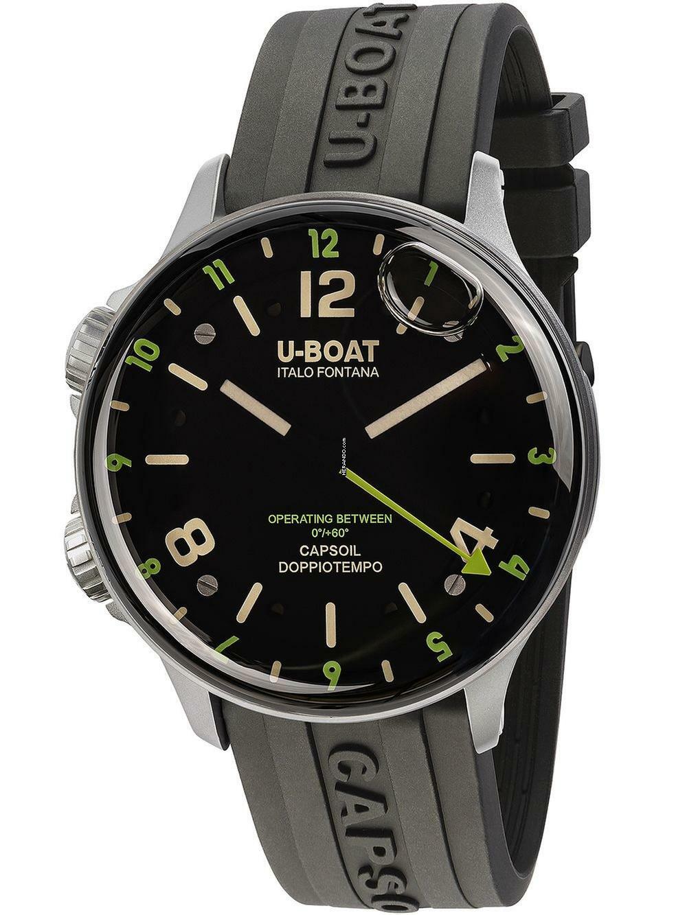 U-Boat 8838/ADie U-Boat Herrenuhr 8838/A ist ein moderner Begleiter aus der Modell-Serie Capsoil Doppiotempo SS GMT 45mm. Die GMT Funktion zur Anzeige einer zweiten Zeitzone ist anhand des pfeilförmigen und farblich hervorgehobenen zweiten Stundenzeigers komfortabel ablesbar. Heimatzeit und Ortszeit behalten Sie so immer im Blick. Eine perfekte Wahl, wenn Sie einen Zeitmesser mit einem zeitgemäßen Look suchen.