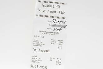 - Wasserdichtigkeit*: ja. Das Prüfprotokoll mit Prüfdruckangabe liegt bei.