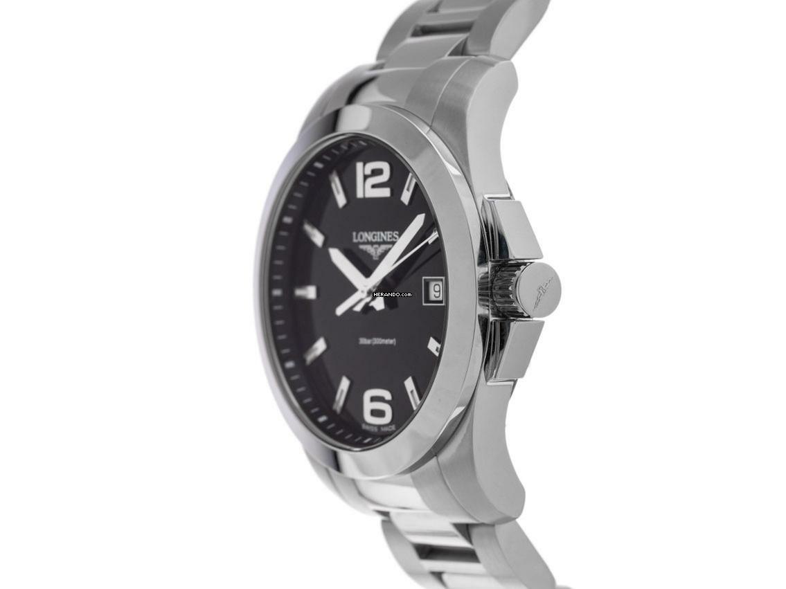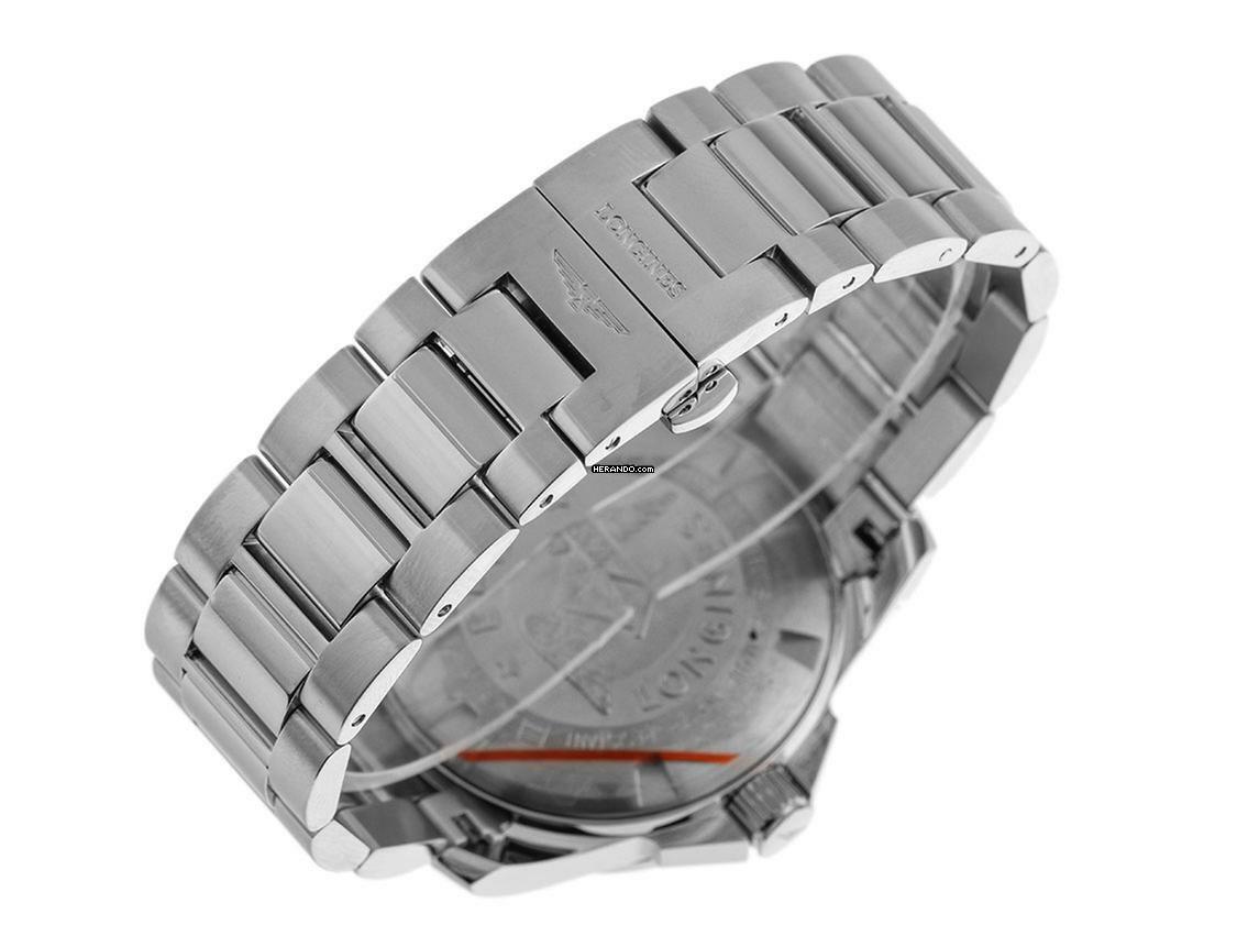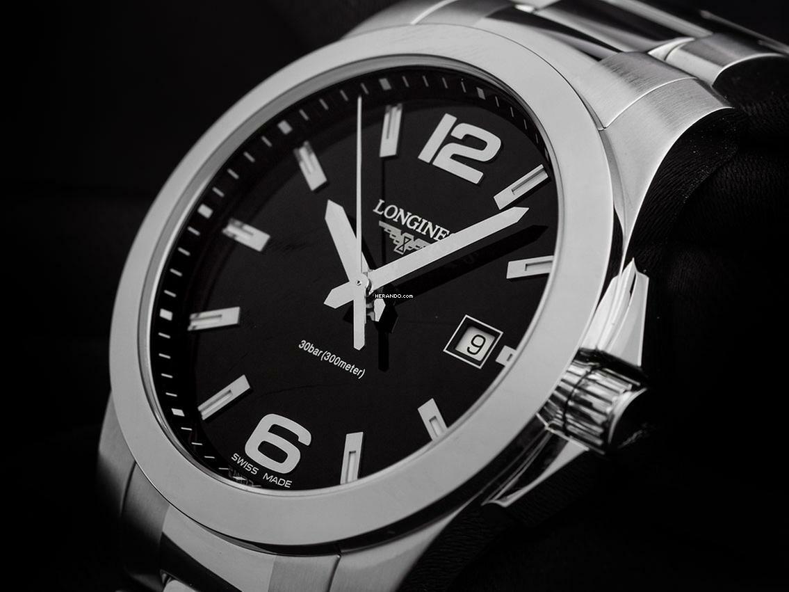 Longines Conquest Stahl Quarz Armband Stahl Gehäuse Edelstahl poliert und satiniert, Gehäusedurchmesser ohne Krone 41mm, Gehäusehöhe 11,8mm. Lünette Edelstahl glatt und poliert. Armband Edelstahl poliert und satiniert, verdeckte Doppelfaltschließe mit Hersteller-Logo. Zifferblatt schwarz mit aufgesetzten arabischen Ziffern, polierten Edelstahl Indexen und Edelstahl Zeigern. Uhrwerk quarzgesteuert, Kaliber L.115.2 mit 7 Edelsteinen. Anzeige von Stunde, Minute und Sekunde über Zeiger aus der Mitte mit Sekundenstopp zur sekundengenauen Einstellung der Uhrzeit, Datumsanzeige mit Schnellverstellung bei 3 Uhr. Saphirglas kratzfest. Krone mit Flankenschutz und Hersteller Logo. Boden Edelstahl verschraubt und graviert. Gewicht der Uhr inklusive Armband 160g, Länge des Armbandes inklusive Gehäuse 170mm. Referenznummer: L3.659.4.56.6, Gehäusenummer: 38741XXX, ID: P08936000525RE-1600, Artikelnummer: 10000080142. Mit Gangkontrolle, neuer Batterie und kompletter äußerlicher Aufarbeitung von Mai 2025. Original Longines Box mit Umkarton und Garantie Papiere ohne Datumseintrag sowie Beschreibung und Watchregister Auszug von Mai 2025, The Watch Register Zertifikat / ohne Eintrag (Internationale Datenbank für verlorene oder gestohlene Uhren), Full Set. Superschnäpchen, fast nicht getragen. Sehr guter Zustand. Lieferzeit sofort.
