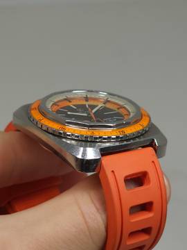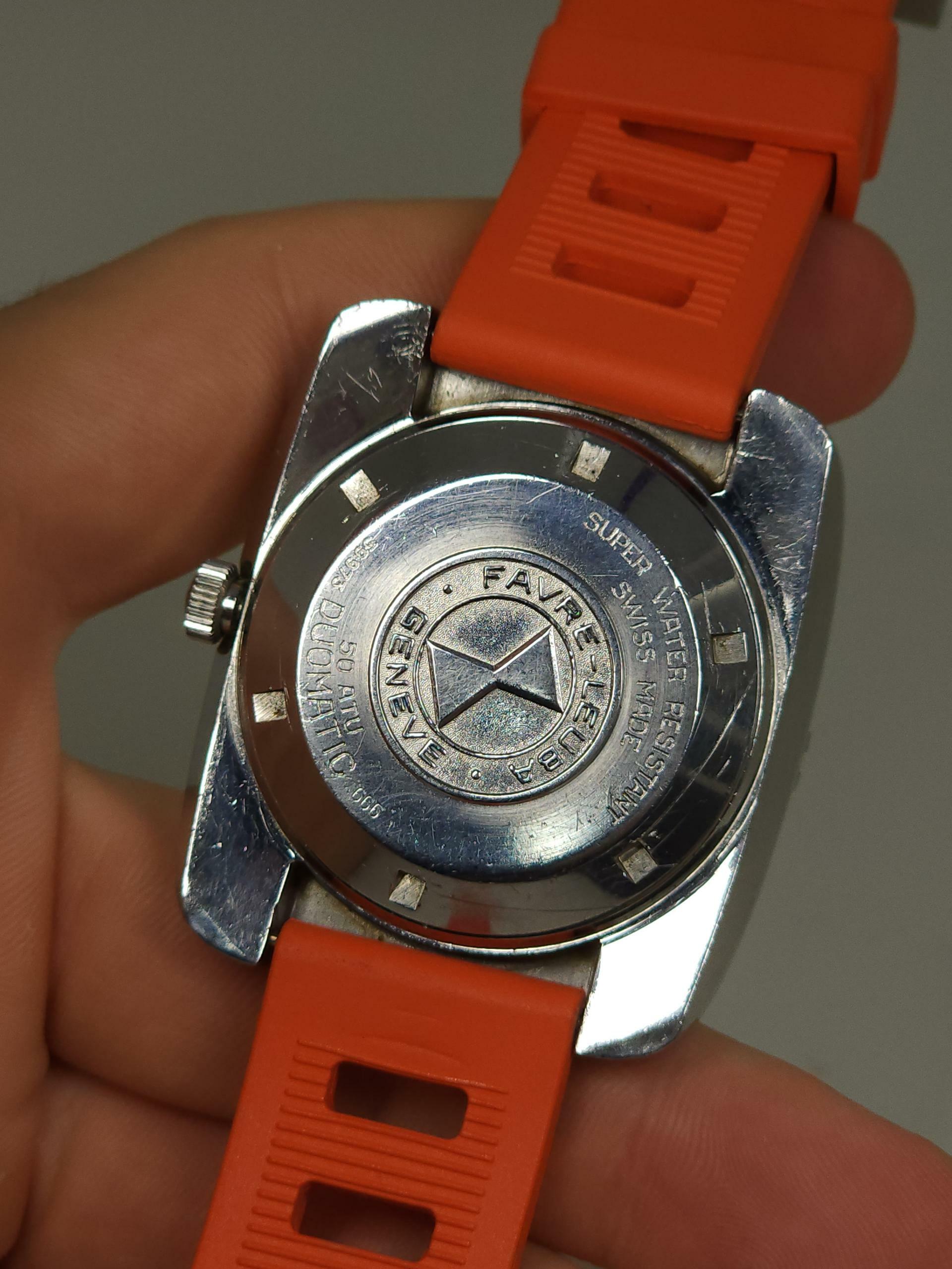 Favre-Leuba bot diese Uhr entweder mit einem orangefarbenen oder einem schwarzen Zifferblatt an, und diese Uhr ist letzteres. Sie wurden über die u.s. Diver Stores verkauft und haben daher das u.s. Divers Aqua Lung Logo auf dem Zifferblatt sowie auf der Präsentationsbox, was ein weiteres lustiges Detail ist. Diese Deep Blue u.s. Divers sind einige der hellsten und ausgefallensten Taucher auf dem Markt und haben wirklich einen ganz eigenen Look. Trotz der Größe ist diese Uhr überraschend bequem am Handgelenk.