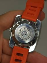 Ein weiteres, nicht ganz offensichtliches Detail ist, dass die innere Lünette um das Glas ein Tetradeck (mit 14 Seiten) ist. Bei diesen Deep Blue-Tauchuhren sind der Wochentag und das Datum vertikal auf dem Zifferblatt angeordnet, was eine ungewöhnliche Anordnung ist und die Eigenart dieser Uhr unterstreicht. Darüber hinaus verfügt die Uhr über eine Schnellverstellung des Datums durch Eindrücken der Krone, was das Einstellen der Uhr zu einem Kinderspiel macht.