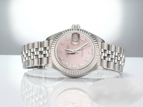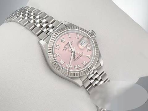 Diese einmalig-schöne und in dieser Ausführung sehr seltene Rolex ist aus Edelstahl in Kombination mit feinstem Weissgold 750 gefertigtFantastisches und sehr seltenes rosafarbenes Zifferblatt mit großen römischen Zahlen