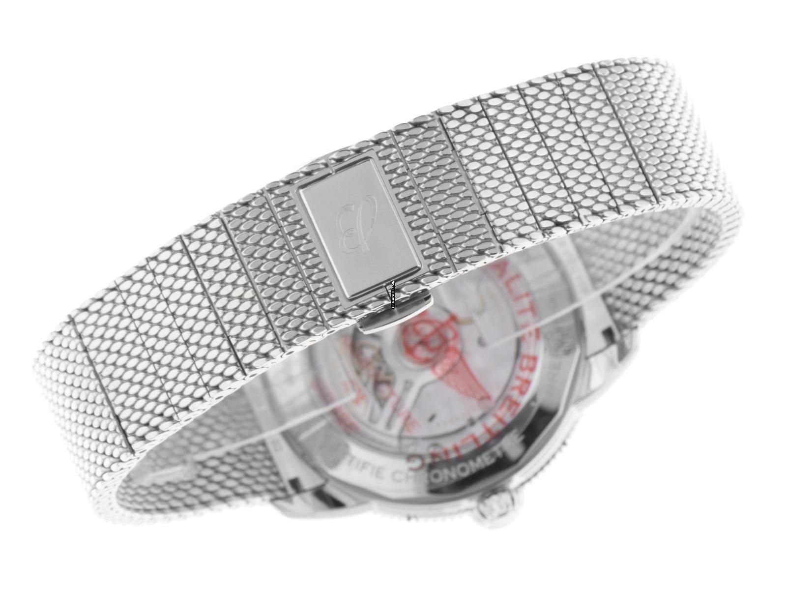 Breitling Superocean Heritage Stahl Automatik Chronometer Armband Stahl Gehäuse Edelstahl poliert, Gehäusedurchmesser ohne Krone 40mm, Gehäusehöhe 12,0mm. Lünette Edelstahl gerädelt mit schwarzem Keramik Inlay, einseitig drehbar mit Sperre. Armband Edelstahl, Doppelsicherheitsfaltschließe Edelstahl mit Hersteller-Logo. Zifferblatt schwarz mit aufgesetzten Edelstahl Indexen und Edelstahl Leuchtzeigern. Uhrwerk Automatik, Chronometer mit Zeugnis, Breitling Manufakturkaliber B31 mit 26 Edelsteinen, Gangreserve ca. 78 Stunden. Anzeige von Stunde, Minute und Sekunde über Zeiger aus der Mitte mit Sekundenstopp zur sekundengenauen Einstellung der Uhrzeit, Datumsanzeige mit Schnellverstellung bei 6 Uhr. Saphirglas kratzfest, doppelseitig entspiegelt und bombiert. Krone verschraubbar mit Hersteller-Logo, 2 Dichtungen. Boden Edelstahl verschraubt und graviert mit Saphirglas Sichtfenster. Gewicht der Uhr inklusive Armband 132g, Länge des Armbandes inklusive Gehäuse 200mm. Wasserdicht bis 20 ATM. Referenznummer: AB3110241B1A1, ID: ST580688360825H-6400, Artikelnummer: 10000081974. Original Breitling Box mit Umkarton und Garantie Papiere von 2025, Full Set. Ungetragen. Lieferzeit sofort. Inklusive Uhrenpass mit einem Farbbild, der genauen Beschreibung sowie dem Wiederbeschaffungswert der Uhr über 6400,-€ und 1000 Tage Garantie ab Kaufdatum.