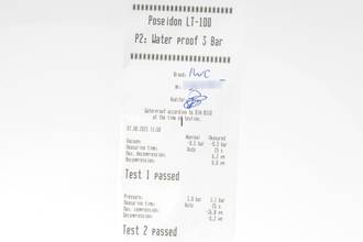 - Wasserdichtigkeit*: ja. Das Prüfprotokoll mit Prüfdruckangabe liegt bei.