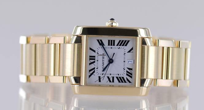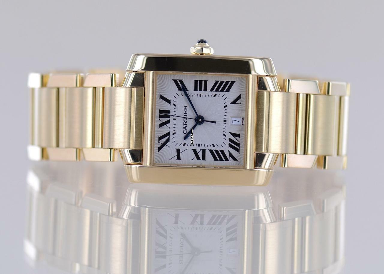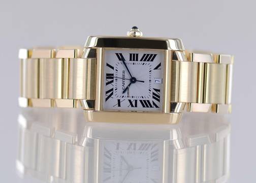 Cartier Tank Française Automatic Date 18K Gold Klassiker Dresswatch Luxusuhr Top