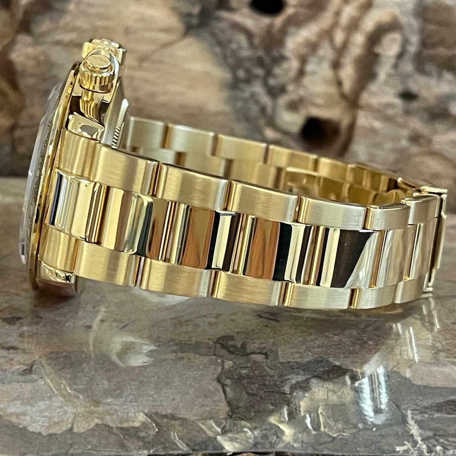 Zifferblattfarbe: goldgelbes Perlmuttblatt mit Diamantbesatz (Rolex Factory Set)