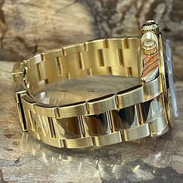 Colour of Dial: yellow gold coloured mother of pearl dial set with diamonds (Rolex factory set)