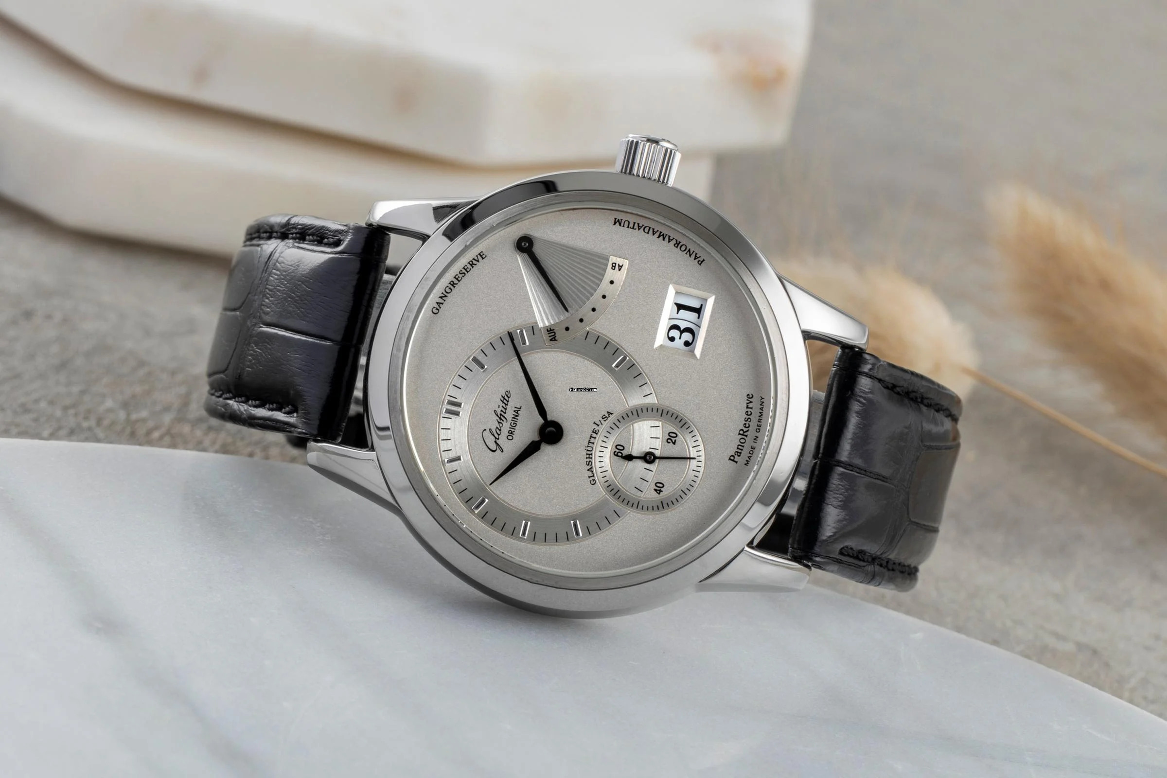 Glashütte Original PanoReserve Edelstahl Handaufzug Herrenuhr Ref. 65-01-02-02-04 B&P