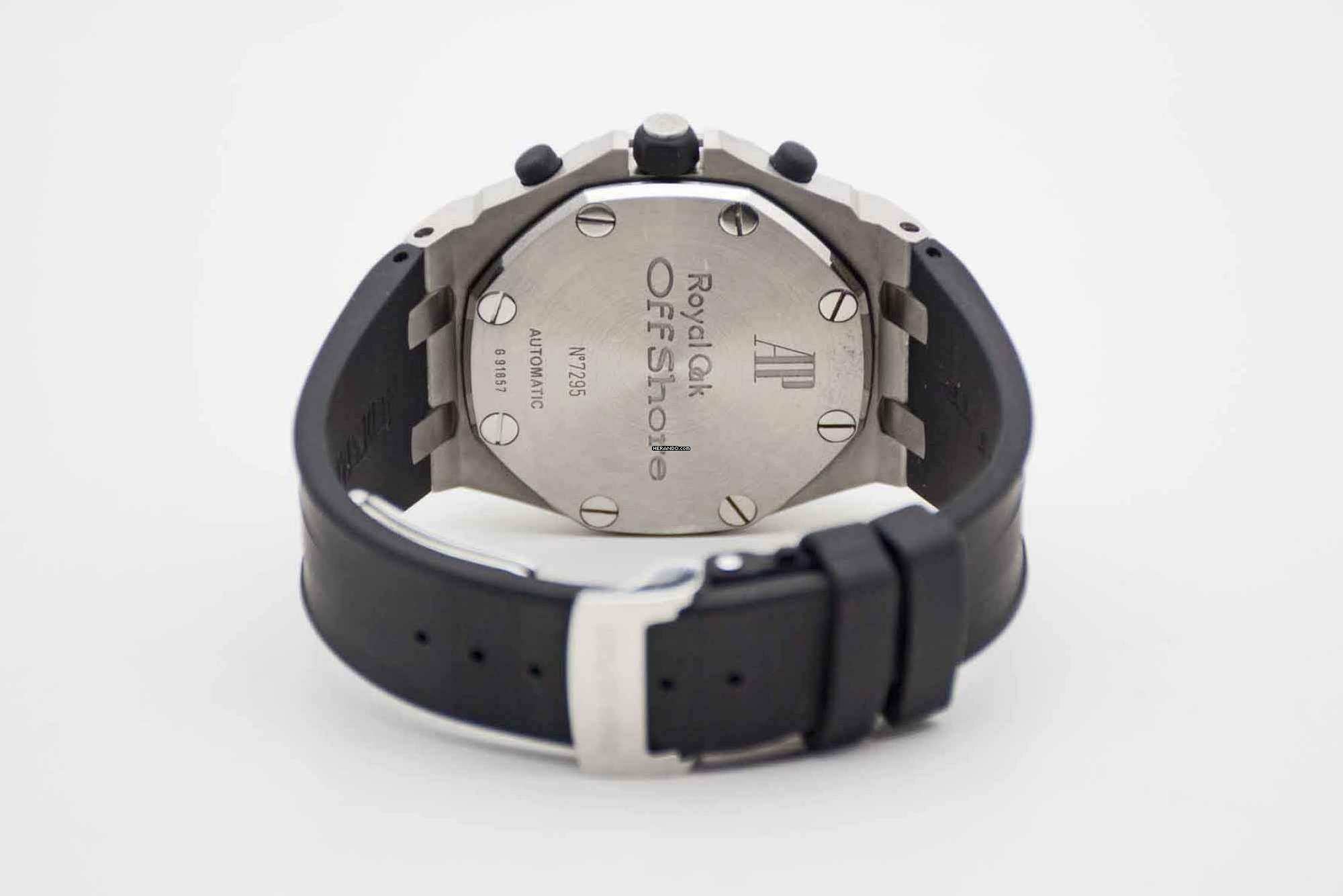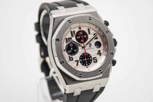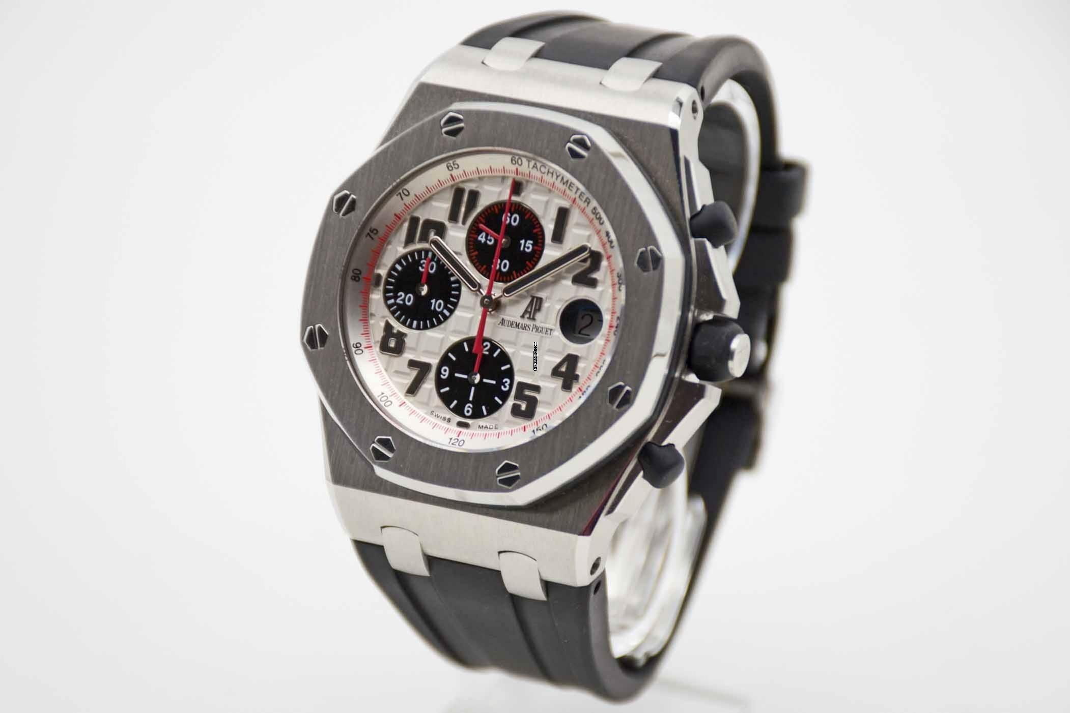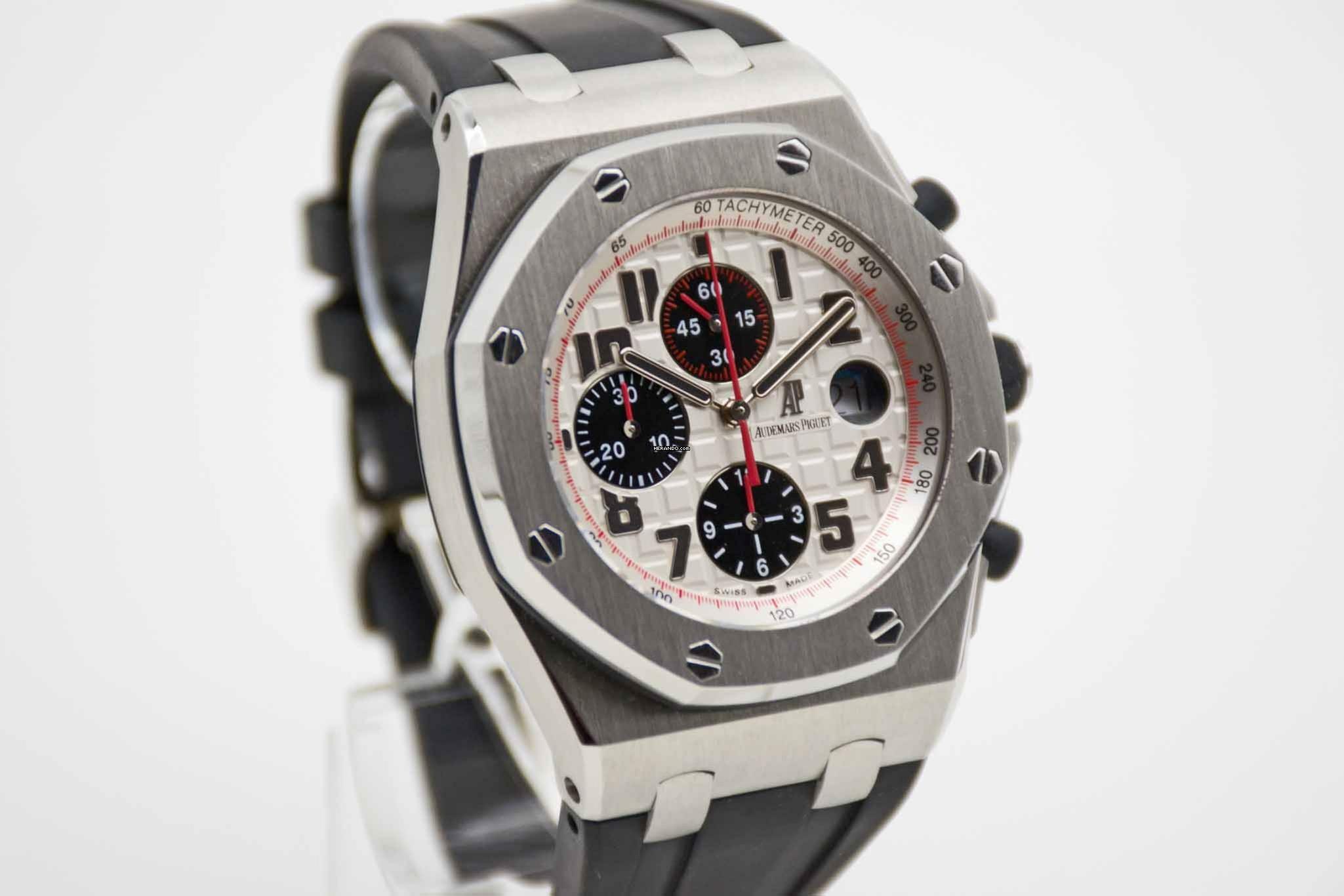 Royal Oak Offshore Chronograph 26170ST.OO.D101CR.02, 42 mm Gehäuse mit perfekter Lünette, silbernem Panda Zifferblatt und schwarzem AP Kautschuk Armband mit AP Faltschließe. Perfektes Fullset in AP Holzbox mit sauberem Inlay und Umkarton, Bedienungsanleitung, Drucktest aus 2024, Garantie Booklet (großer AP Service A in 08/2023 eingetragen) und Audemars Piguet Garantie Zertifikat aus 2010. Dieser Offshor Chrono befindet sich in perfektem und sehr gepflegtem Zustand. Inzahlungnahmen sind nur bei direktem Kontakt möglich. Zu unserer Sicherheit lagern wir sämtliche Uhren unseres Bestandes extern im Banksafe, daher bitten wir um vorherige Terminvereinbarung. Royal Oak Offshore Chronograph 26170ST.OO.D101CR.02, 42 mm case with silver Panda dial, perfect brushed bezel and AP rubber strap with AP folding clasp. Full set in AP inner and outer box with clean inlay, Offshore owners manual, pressure test receipt (2024), AP warranty booklet (with AP Service A stamped in 08/2023) and Audemars Piguet warranty certificate from 2010. The watch comes in perfect and mint condition. Trades are possible if you contact us in advance. Please keep in mind that our complete inventory is stored in our bank safe for safety purposes.