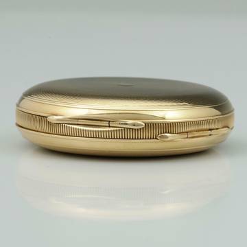 Heavy Swiss “bassine et filets” case made of 18k yellow gold with two spring-loaded covers. High-quality Jürgensen hunter case with 18k and case maker's hallmark “JJ”. Signed Jules Jürgensen, 18k punchmarks engine turned and reeded band, pendant with Saturn rings. The case is in almost mint condition, the guilloché work is beautifully preserved and case is without inscriptions. The cuvette is signed “Jules Jürgensen Copenhagen No. 10949” and with reference to the patent for the bow hand setting of January 15, 1867.