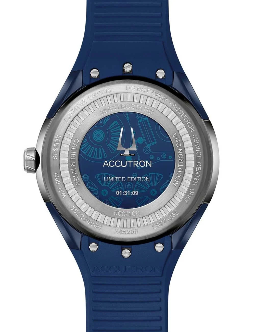 Zusätzliche Freude an Ihrer neuen Bulova Uhr wird Ihnen das hochwertig verarbeitete Armband aus Kautschuk – Farbe: Blau – mit Faltschließe bereiten. Das Kautschuk-Armband bietet einen hohen Tragekomfort und kann bis zu einem maximalen Handgelenkumfang von 230 mm getragen werden.