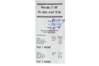 - Wasserdichtigkeit*: ja. Das Prüfprotokoll mit Prüfdruckangabe liegt bei.