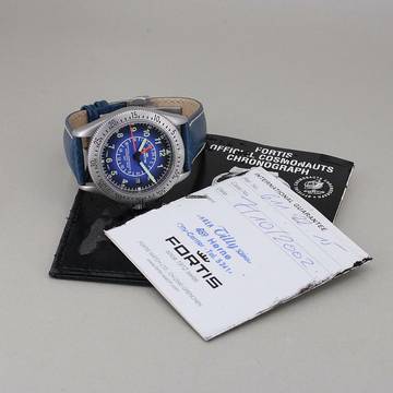 Lieferumfang: FORTIS Cosmonauts, Garantiepapiere (10/2002), Bedienungsanleitung, Kartenmäppchen (schlechter Zustand), Juwelier FineART Uhrenzertifikat,
