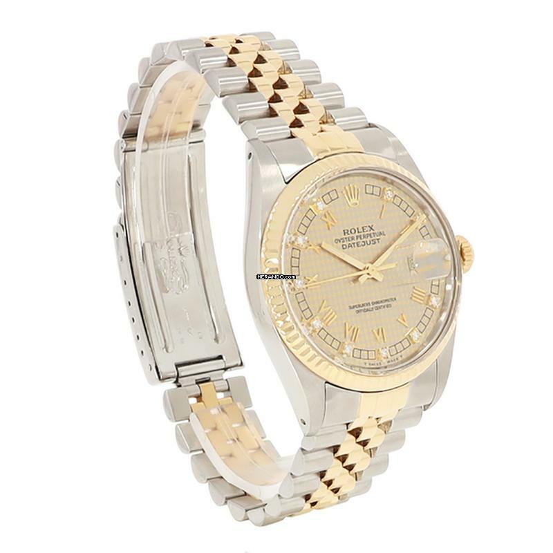 Rolex Datejust 36 Herrenarmbanduhr Datejust Automatik 16013 Houndstooth Dial aus Stahl / Gold Fullset