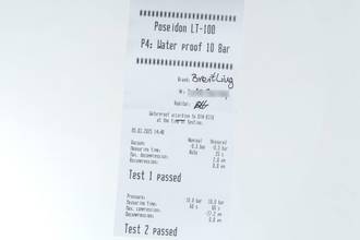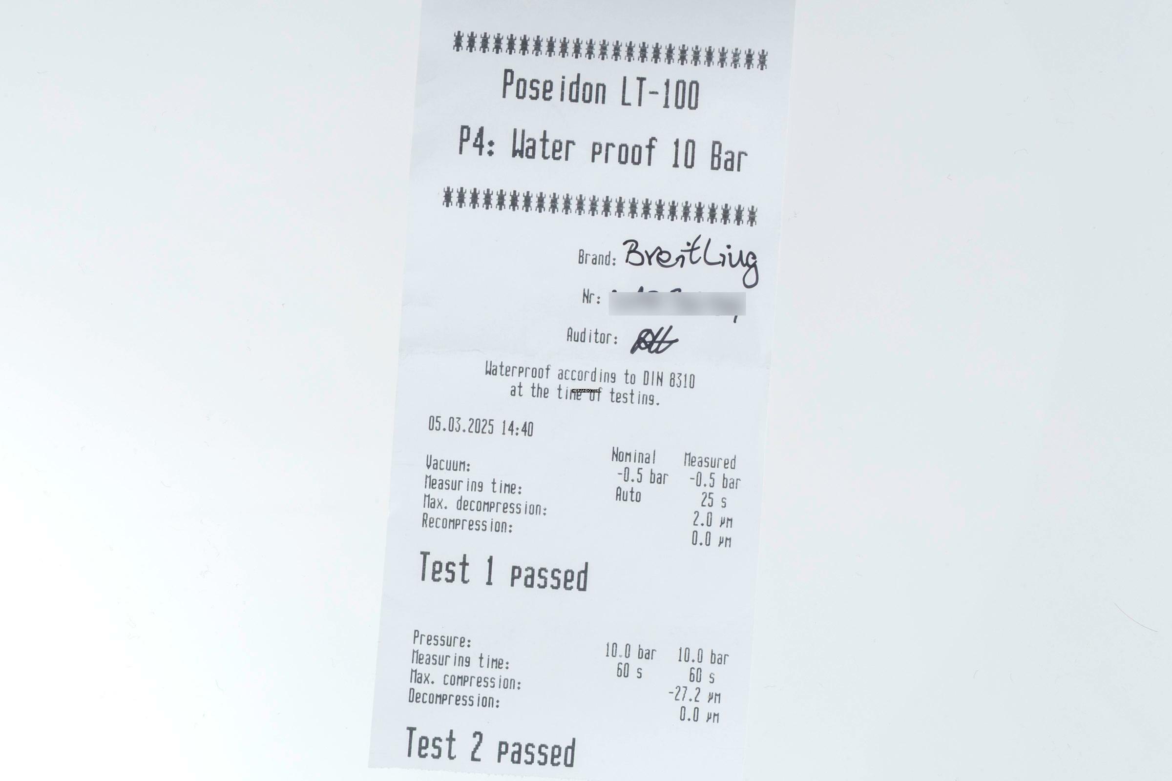 * Wenn die Uhr positiv auf Wasserdichtigkeit getestet wurde, dann gilt diese Eigenschaft zum Zeitpunkt der Messung. Wasserdichtigkeit ist nach DIN 8310 keine bleibende Eigenschaft. Sie sollte jährlich und vor besonderen Belastungen überprüft werden, da die eingebauten Dichtelemente in ihrer Funktion und im täglichen Gebrauch nachlassen. Einflüsse wie starke Temperaturschwankungen, Chlor, Seife oder Salzwasser wirken sich negativ auf die Wasserdichtigkeit aus.