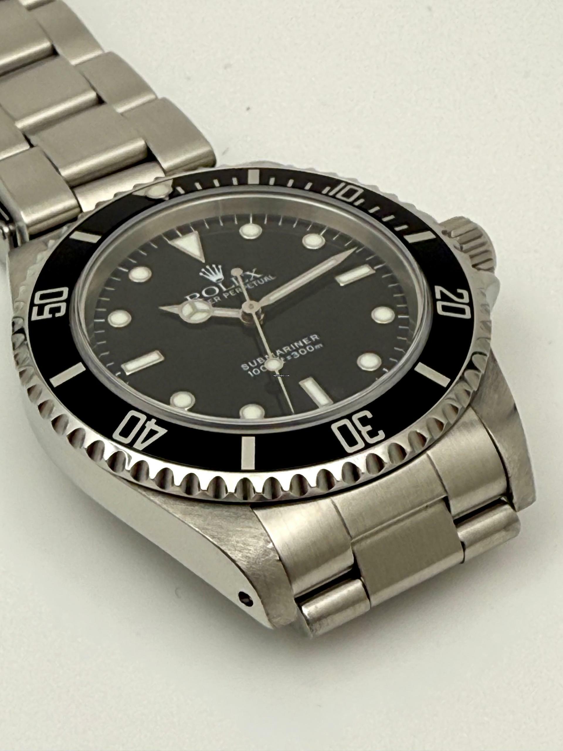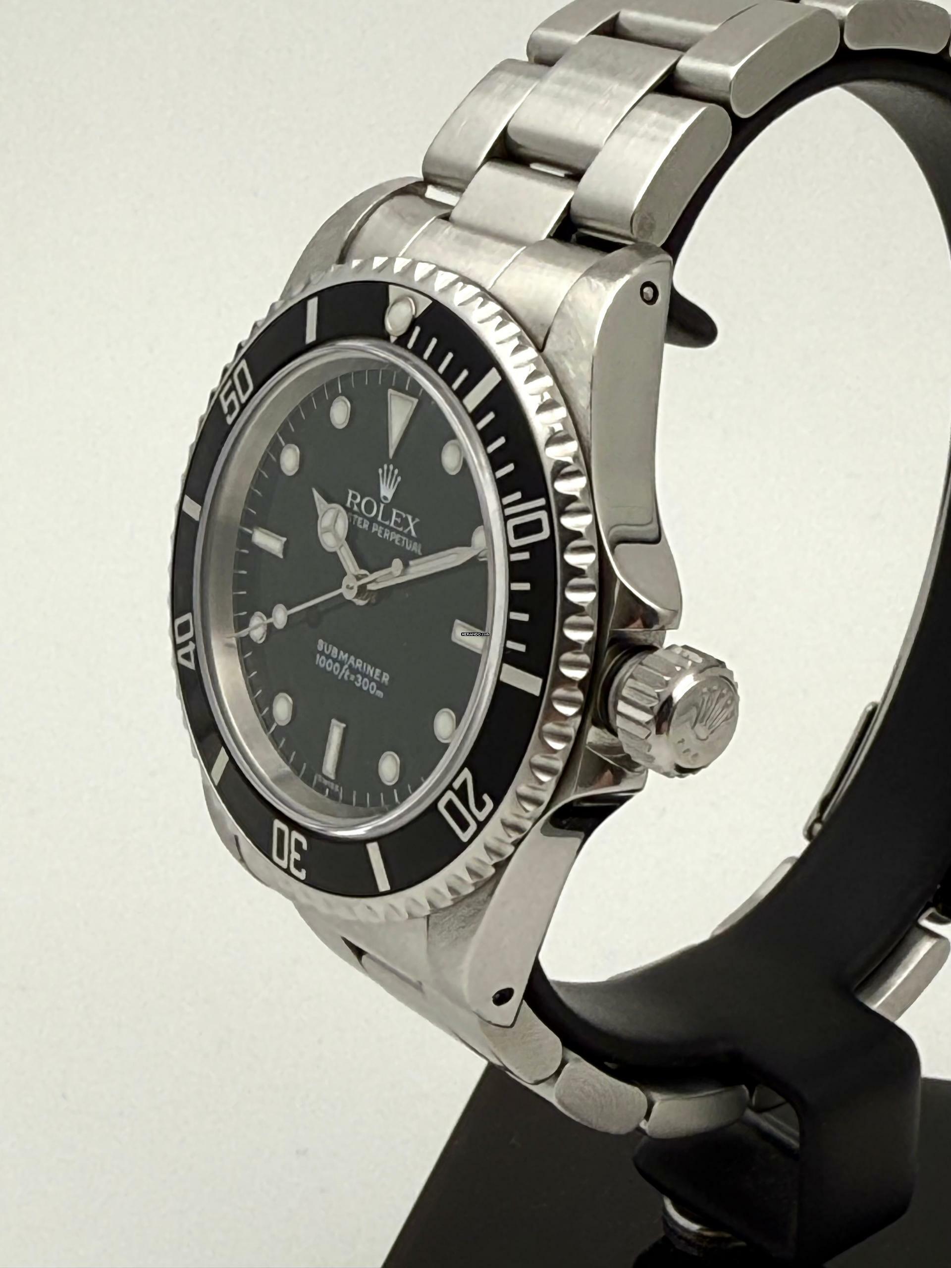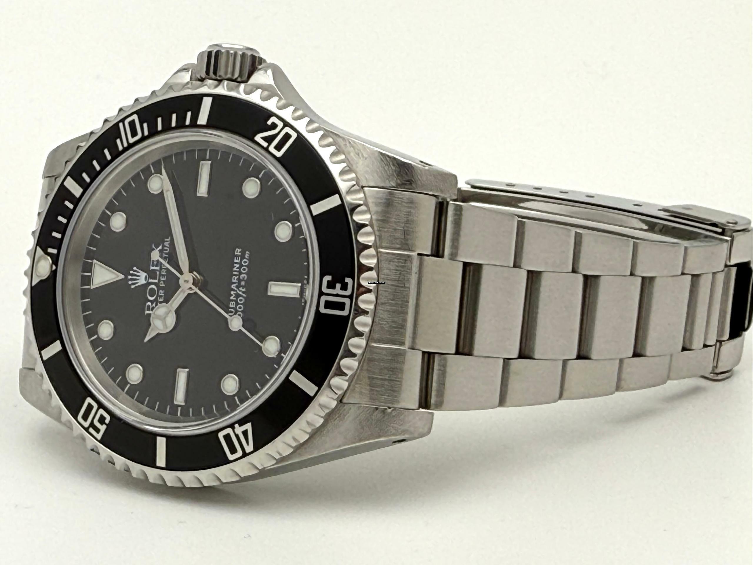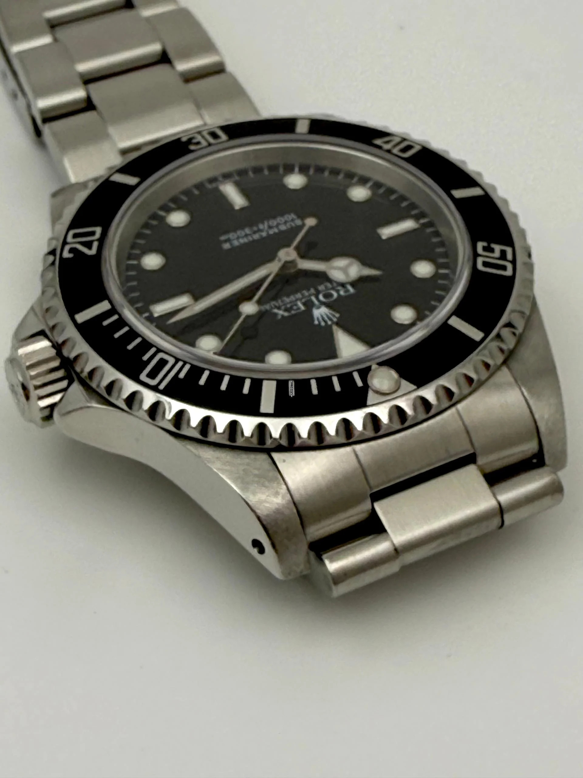 For sale is this Rolex Submariner No Date 40 mm. Steel with a black Luminova „Swiss Only“ dial and hands on Oyster-Bracelet.