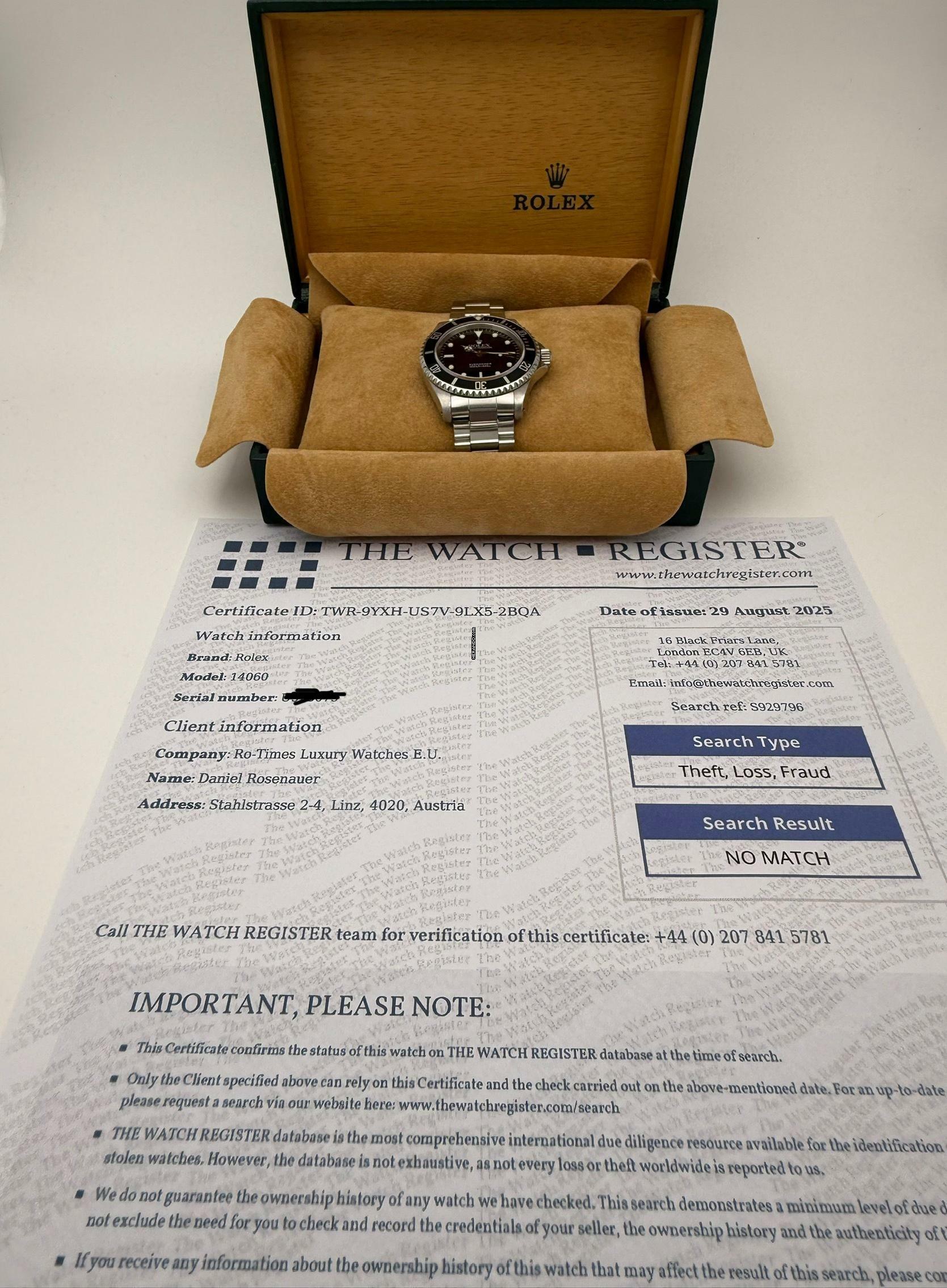 Zubehör laut Fotos: Original Rolex Box, wir erstellen ein Echtheitszertifikat und eine Händlerrechnung.