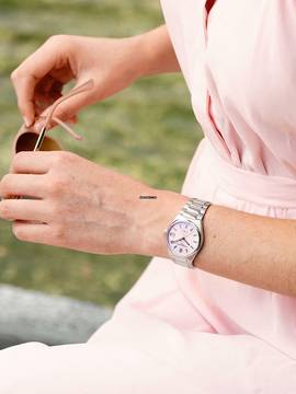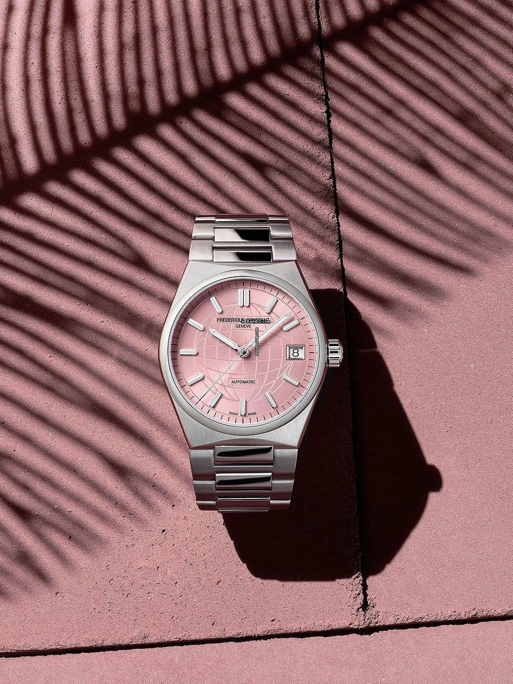 Einen weitgehenden Schutz vor unbeabsichtigten Kratzern und Blessuren bietet das Uhrenglas vom Typ "Saphirglas, entspiegelt". Darunter zeigt sich das Zifferblatt Ihrer neuen Traumuhr in der Farbe Pink. Zur Beleuchtung der Frederique Constant FC-303LP2NH6B tragen Leuchtzeiger, Leuchtindexe bei und ermöglichen eine gute Ablesbarkeit auch bei ungünstigen Lichtverhältnissen.
