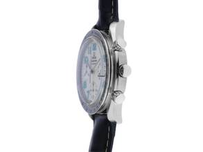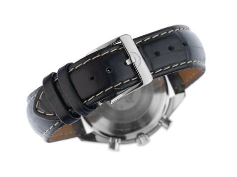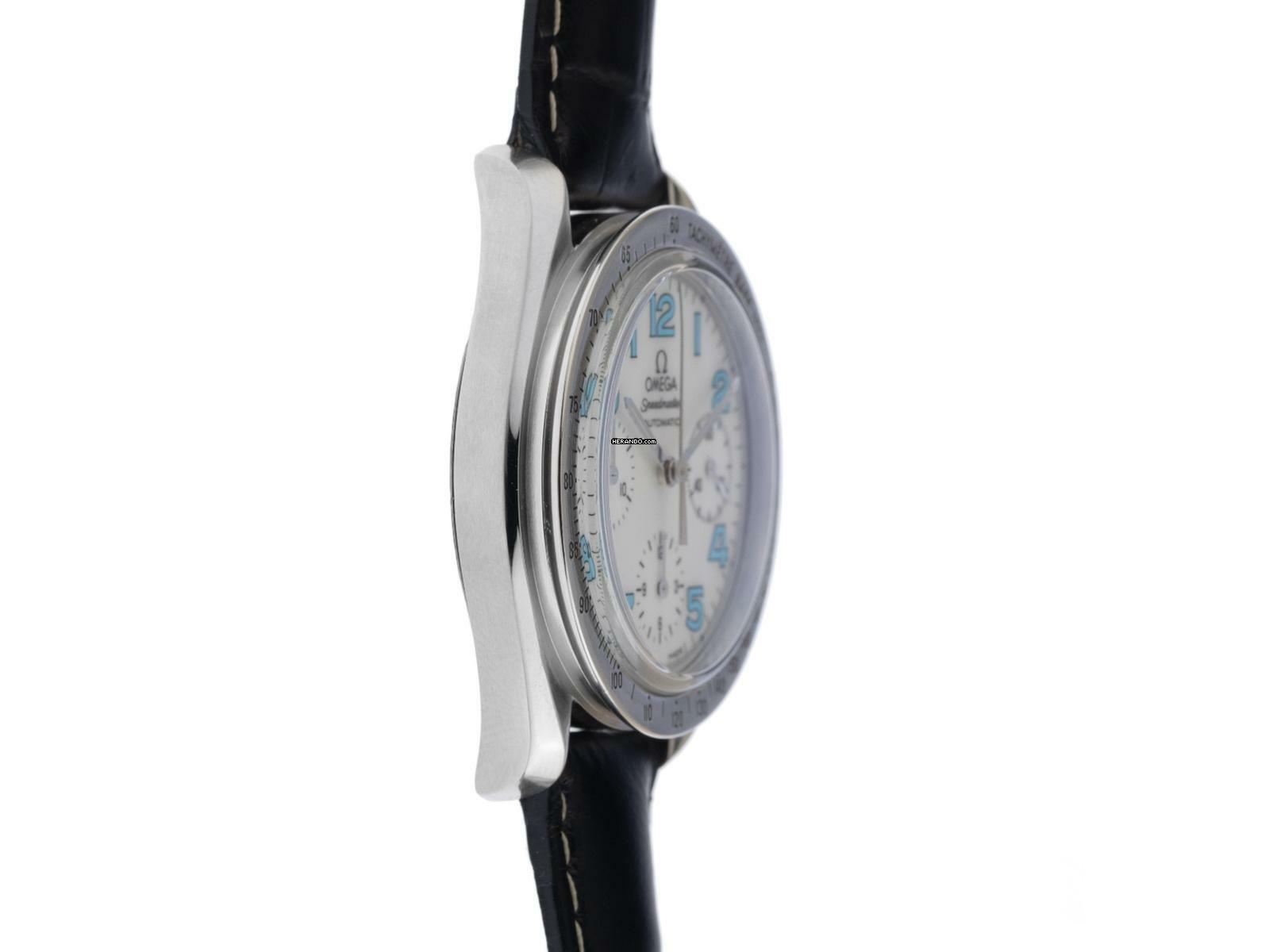 Omega Speedmaster Reduced Stahl Perlmutt Automatik Chronograph Armband Krokoleder Gehäuse Edelstahl poliert und satiniert, Gehäusedurchmesser ohne Krone 39mm, Gehäusehöhe 17,7mm. Lünette Edelstahl poliert mit Tachymeterskala. Armband Krokoleder schwarz mit heller Ziernaht, Anstoßbreite 18mm, Stiftschließe Edelstahl mit Hersteller-Logo. Zifferblatt Perlmutt hell mit blauen arabischen Ziffern und polierten Edelstahl Zeigern. Uhrwerk Automatik, Chronograph, Chronometer, Omega Manufakturkaliber 3220 mit 47 Edelsteinen. Anzeige von Stunde und Minute über Zeiger aus der Mitte, kleine Sekunde mit Sekundenstopp zur sekundengenauen Einstellung der Uhrzeit bei 3 Uhr. Saphirglas kratzfest. Krone Edelstahl mit Hersteller-Logo. Boden Edelstahl graviert. Gewicht der Uhr inklusive Armband 69g. Referenznummer: 175.0042, Gehäusenummer: 90410XXX, Baujahr: 1999, ID: P130048000925H-6800, Artikelnummer: 10000081718. Mit Gangkontrolle und kompletter äußerlicher Aufarbeitung von September 2025. Original Omega Box und Beschreibung sowie Watchregister Auszug von September 2025, The Watch Register Zertifikat / ohne Eintrag (Internationale Datenbank für verlorene oder gestohlene Uhren). Superschnäppchen. Sehr guter Zustand. Lieferzeit sofort. Inklusive certified pre owned Siegel / Uhrenpass mit einem Farbbild, der genauen Beschreibung sowie dem Wiederbeschaffungswert der Uhr über 6800,-€ und 1000 Tage Garantie ab Kaufdatum.