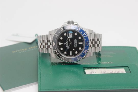 Rolex Gmt-Master II "Batman" 126710BLNR Full Set 2020, cassa in acciaio da 40mm, quadrante nero, lunetta in acciaio con inserto in ceramica blu e nero, bracciale Jubilee in acciaio lucido e satinato con chiusura Oysterlock in acciaio lucido e satinato. Completo di scatola e card di garanzia originali Rolex.