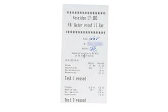- Wasserdichtigkeit*: ja. Das Prüfprotokoll mit Prüfdruckangabe liegt bei.