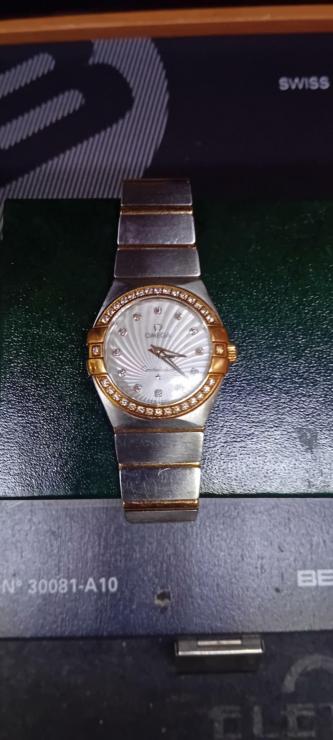 Omega Constellation Stell and Gold MOP Diamonds bezel and Index. Mother-of-Pear Supernova Pattern