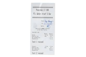 - Wasserdichtigkeit*: ja. Das Prüfprotokoll mit Prüfdruckangabe liegt bei.