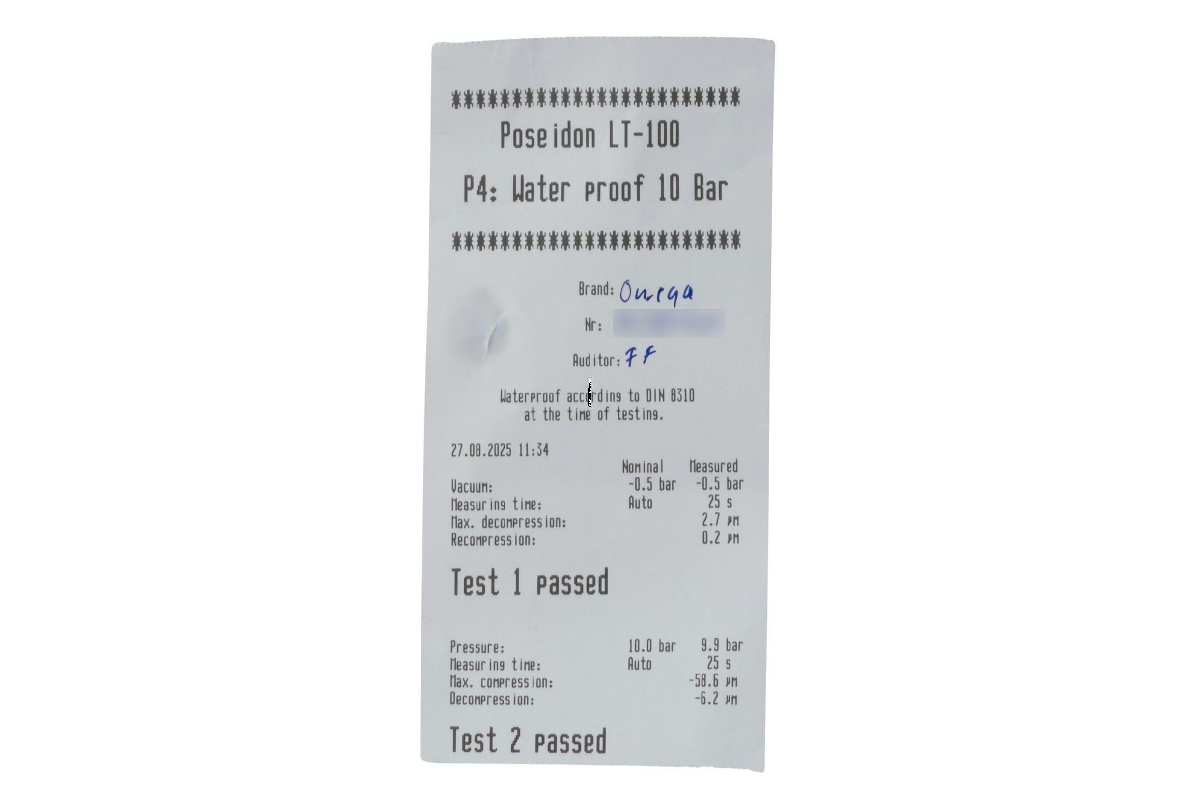 * Wenn die Uhr positiv auf Wasserdichtigkeit getestet wurde, dann gilt diese Eigenschaft zum Zeitpunkt der Messung. Wasserdichtigkeit ist nach DIN 8310 keine bleibende Eigenschaft. Sie sollte jährlich und vor besonderen Belastungen überprüft werden, da die eingebauten Dichtelemente in ihrer Funktion und im täglichen Gebrauch nachlassen. Einflüsse wie starke Temperaturschwankungen, Chlor, Seife oder Salzwasser wirken sich negativ auf die Wasserdichtigkeit aus.