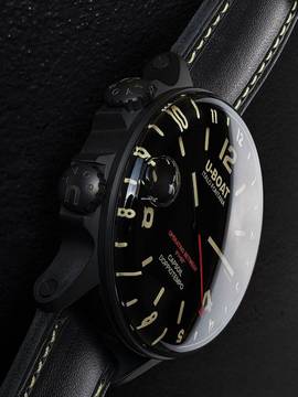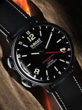 Einen weitgehenden Schutz vor unbeabsichtigten Kratzern und Blessuren bietet das Uhrenglas vom Typ "Saphirglas, entspiegelt". Darunter zeigt sich das Zifferblatt Ihrer neuen Traumuhr in der Farbe Schwarz. Zur Beleuchtung der U-Boat 9671 tragen Leuchtzeiger, Leuchtindexe bei und ermöglichen eine gute Ablesbarkeit auch bei ungünstigen Lichtverhältnissen.