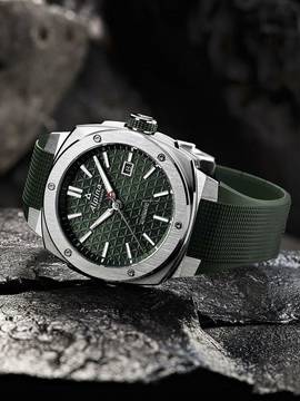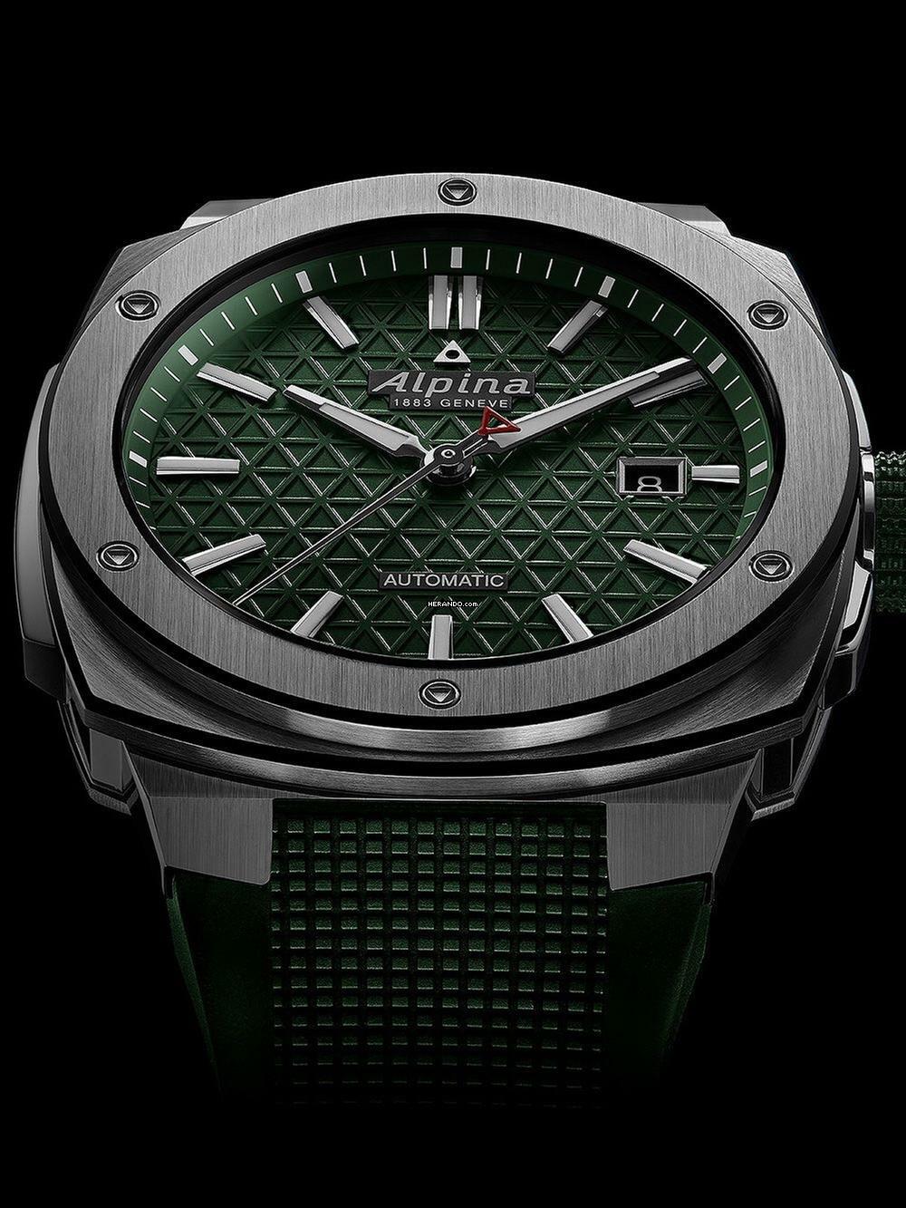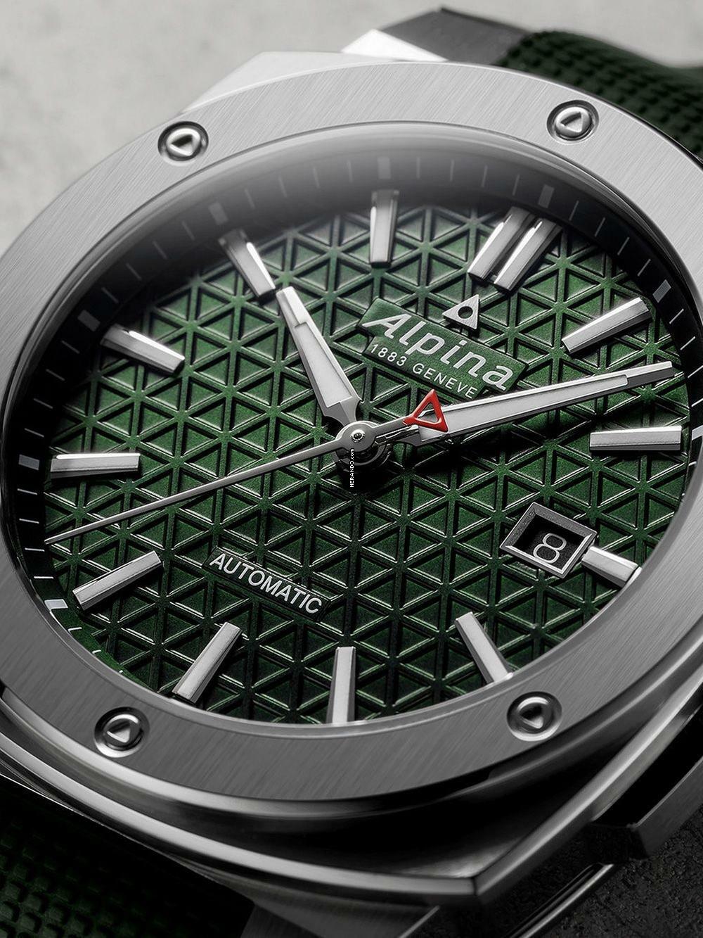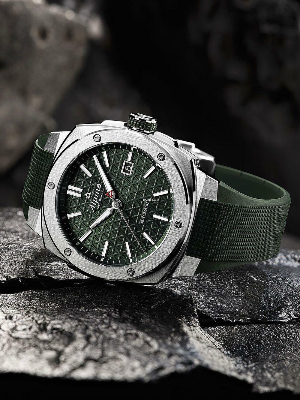Zusätzliche Freude an Ihrer neuen Alpina Uhr wird Ihnen das hochwertig verarbeitete Armband aus Kautschuk – Farbe: Grün – mit Faltschließe bereiten. Das Kautschuk-Armband bietet einen hohen Tragekomfort und kann bis zu einem maximalen Handgelenkumfang von 220 mm getragen werden.