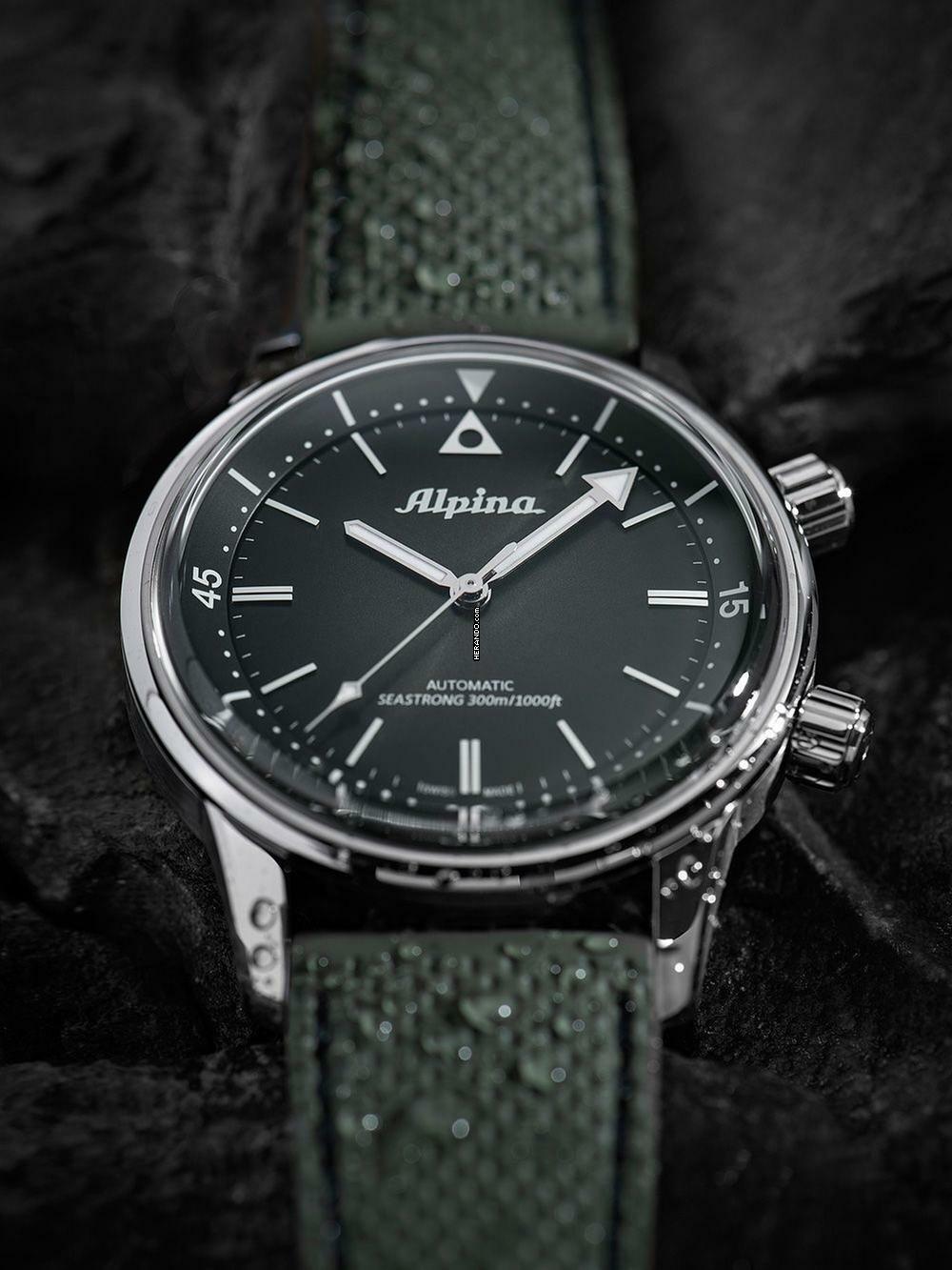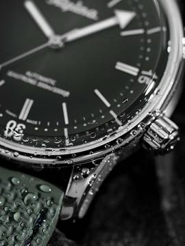 Zusätzliche Freude an Ihrer neuen Alpina Uhr wird Ihnen das hochwertig verarbeitete Armband aus Kautschuk – Farbe: Grün – mit Dornschließe bereiten. Das Kautschuk-Armband bietet einen hohen Tragekomfort und kann bis zu einem maximalen Handgelenkumfang von 220 mm getragen werden.