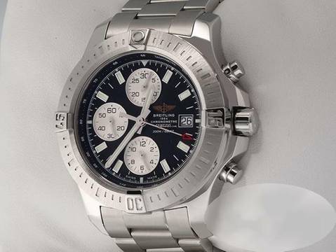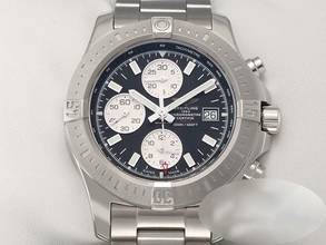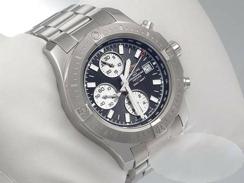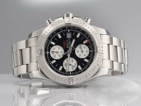 Diese wundervolle Breitling ist aus Edelstahl gefertigtFantastisches schwarzes Zifferblatt mit großen Stabindices und silbernen Totalisatoren