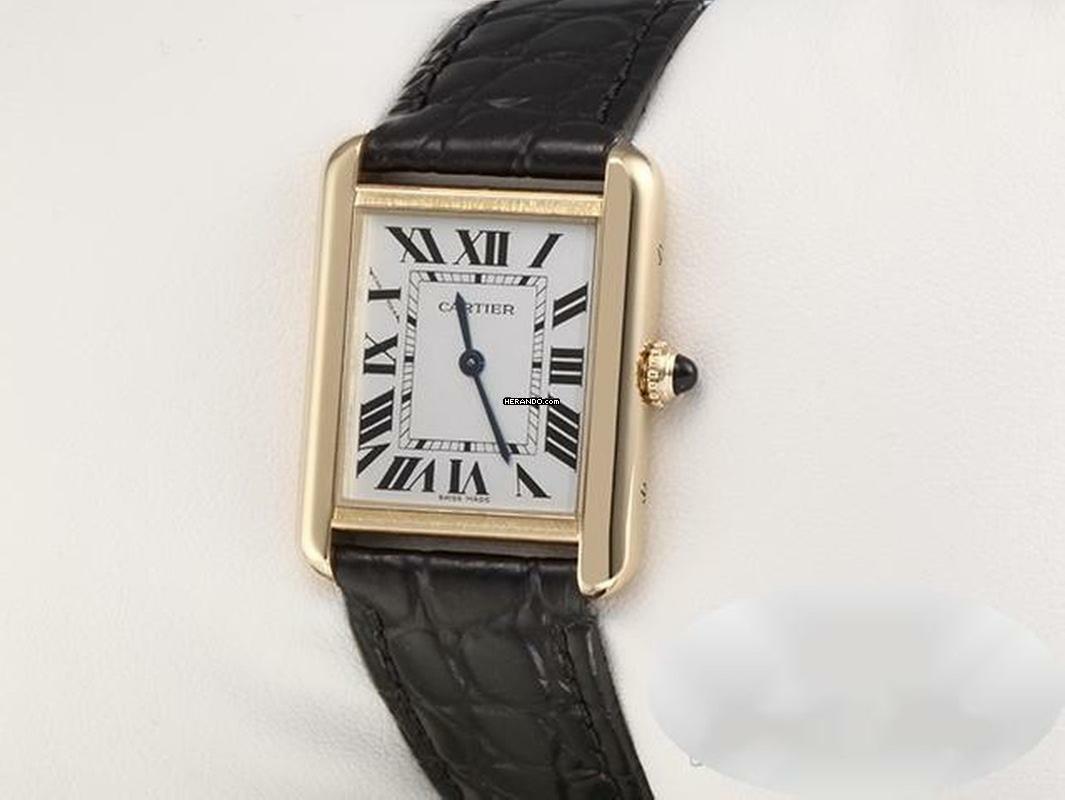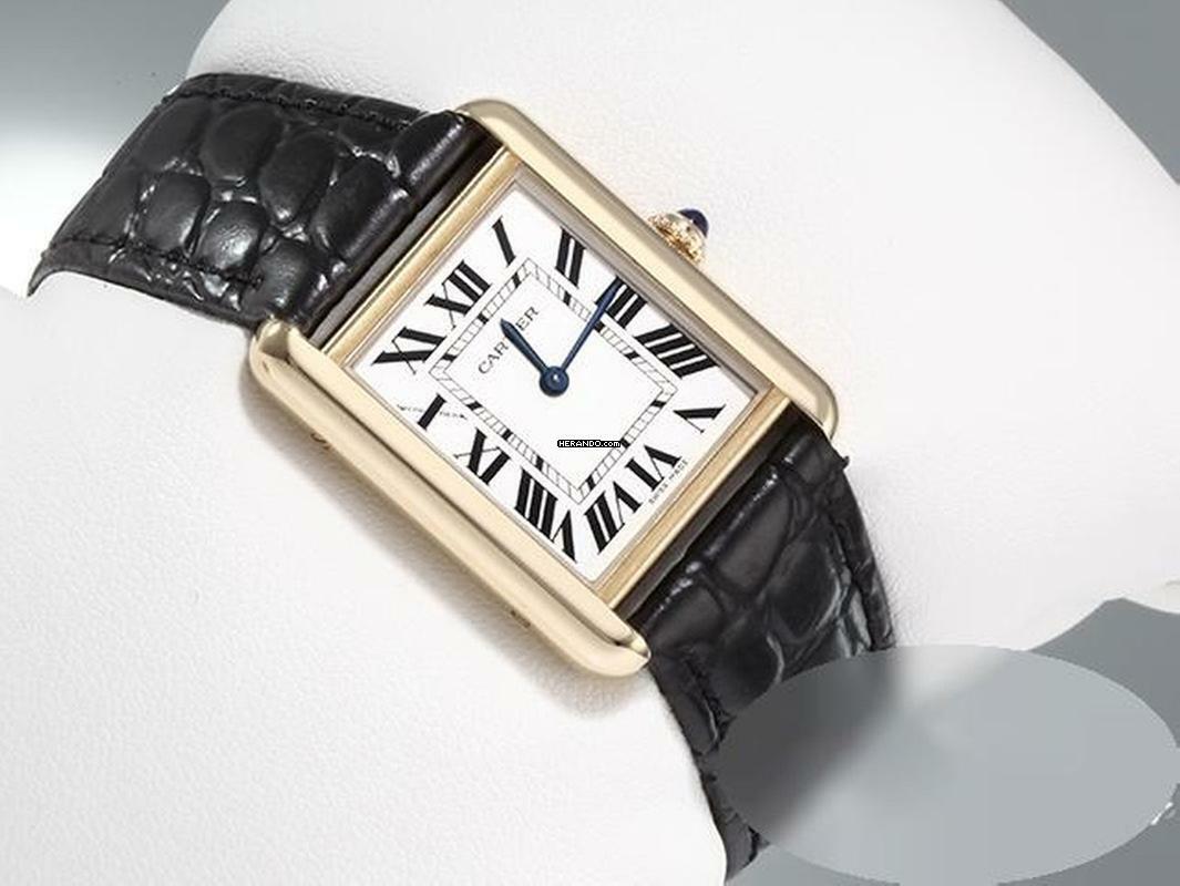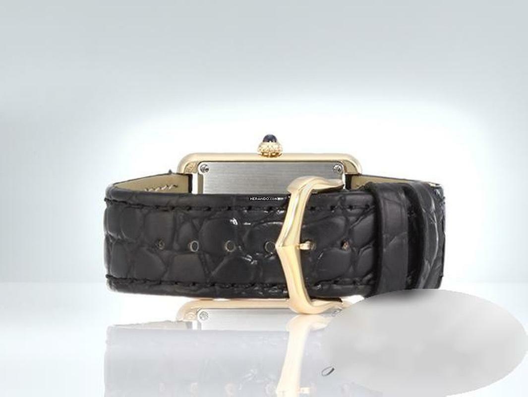 Diese faszinierende Cartier aus feinstem Gelbgold 750 mit einem Boden aus Edelstahl gefertigtFantastisches silbernes Zifferblatt mit großen schwarzen cartiertypischen römischen Zahlen