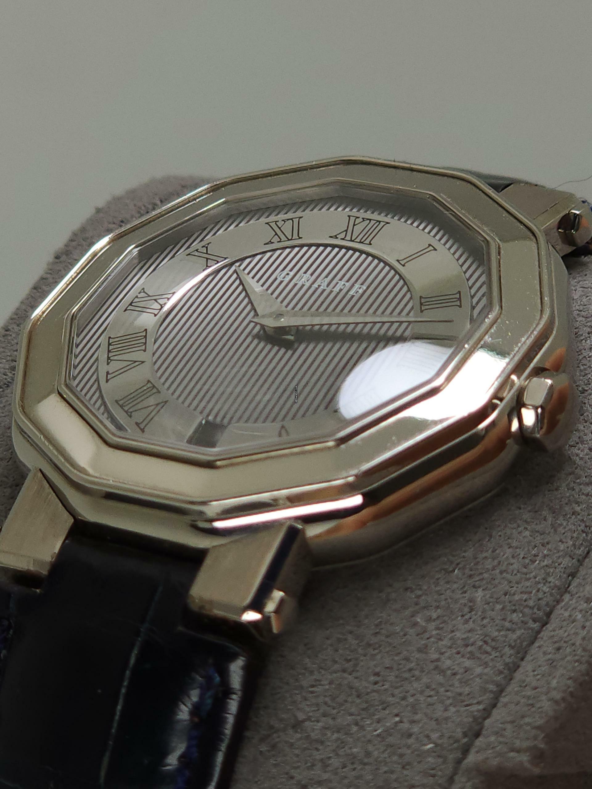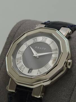 Die Graff gxxvi Quartz ist keine einzelne historische Uhr, sondern eine Modellreihe von Graff, die für ihr architektonisches, dodekaedrisches (12-seitiges) Gehäusedesign bekannt ist und in 18-karätigem Weißgold ausgeführt wird.