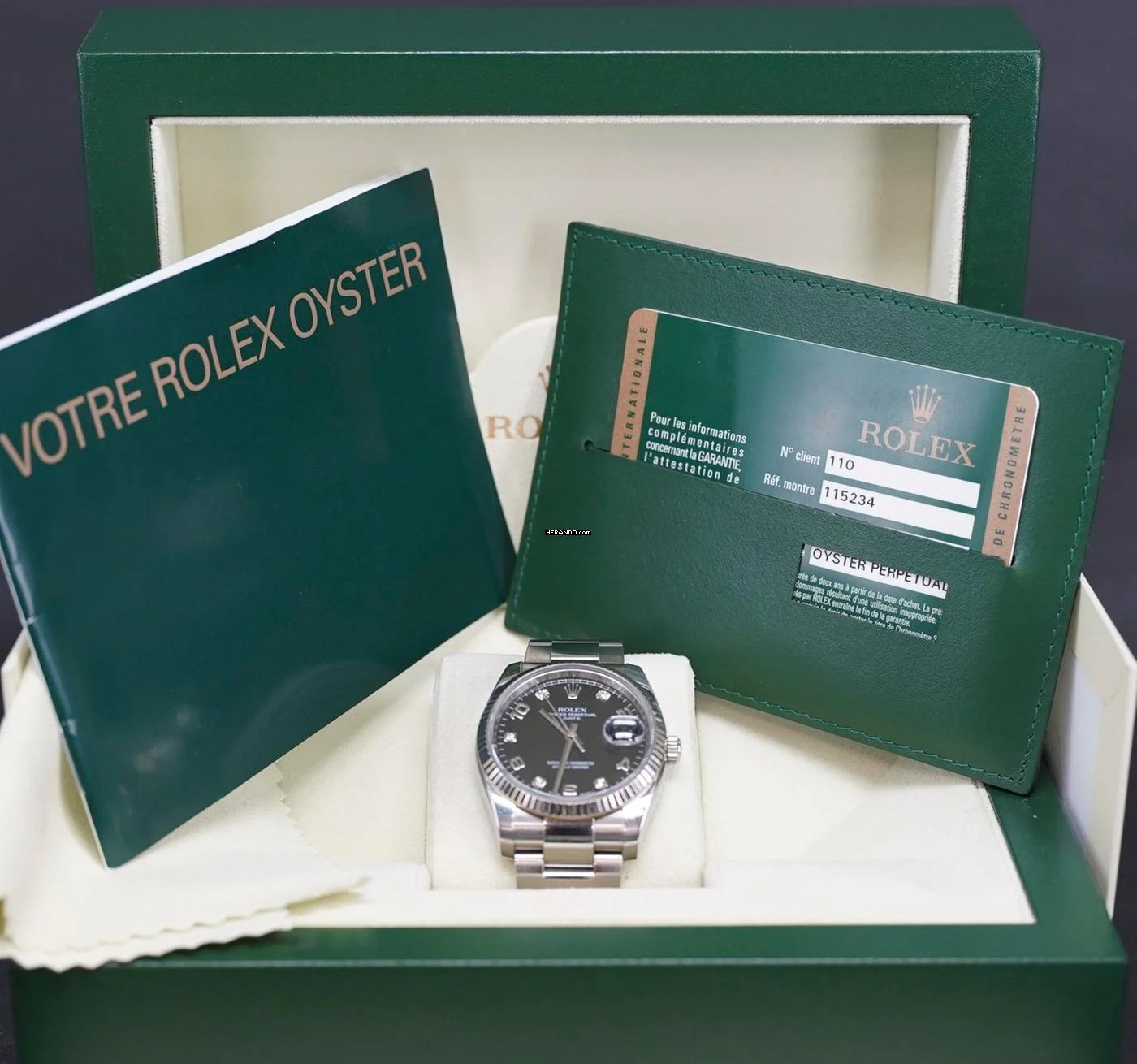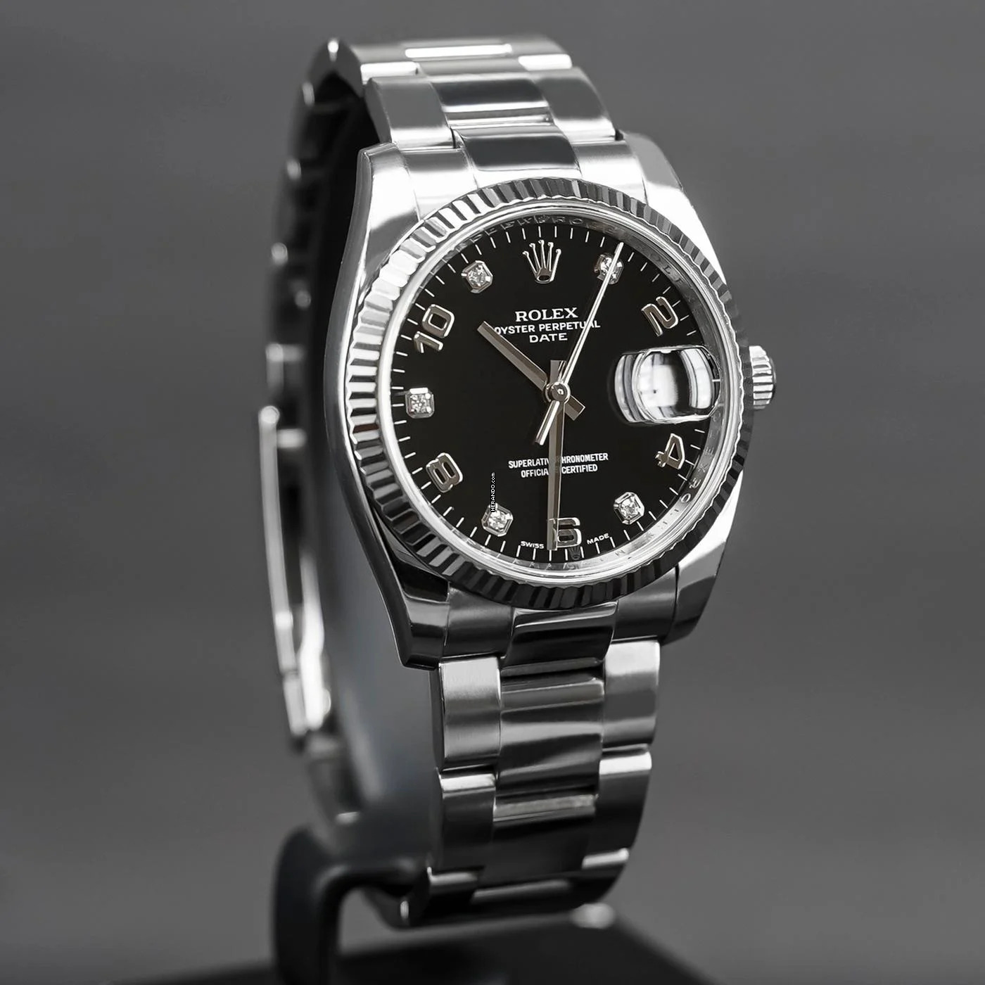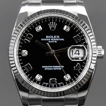 Rolex Oyster Perpetual Date Black Diamond Dial Fullset LC EU
