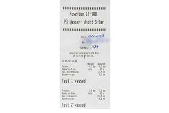 - Wasserdichtigkeit*: ja. Das Prüfprotokoll mit Prüfdruckangabe liegt bei.