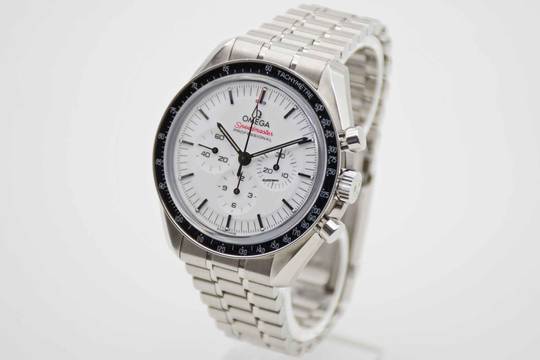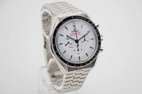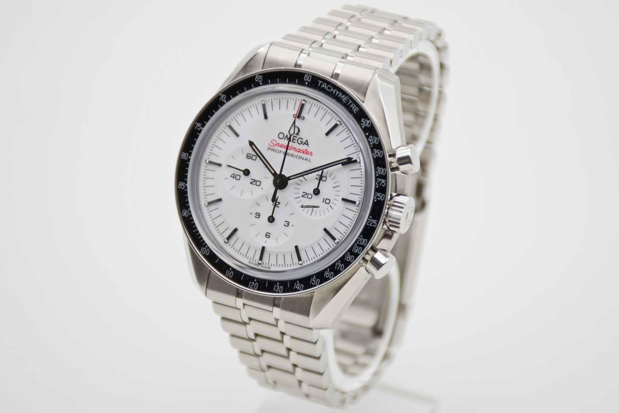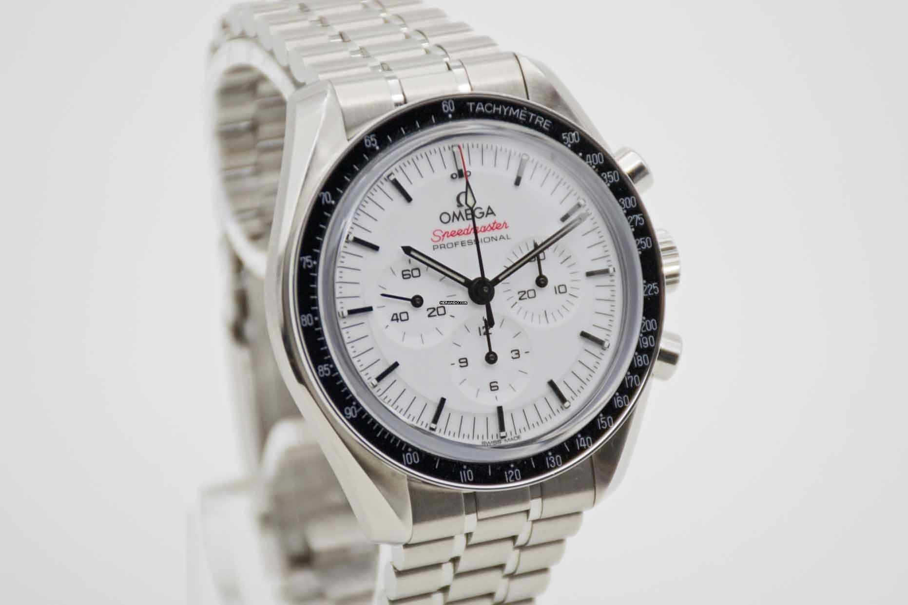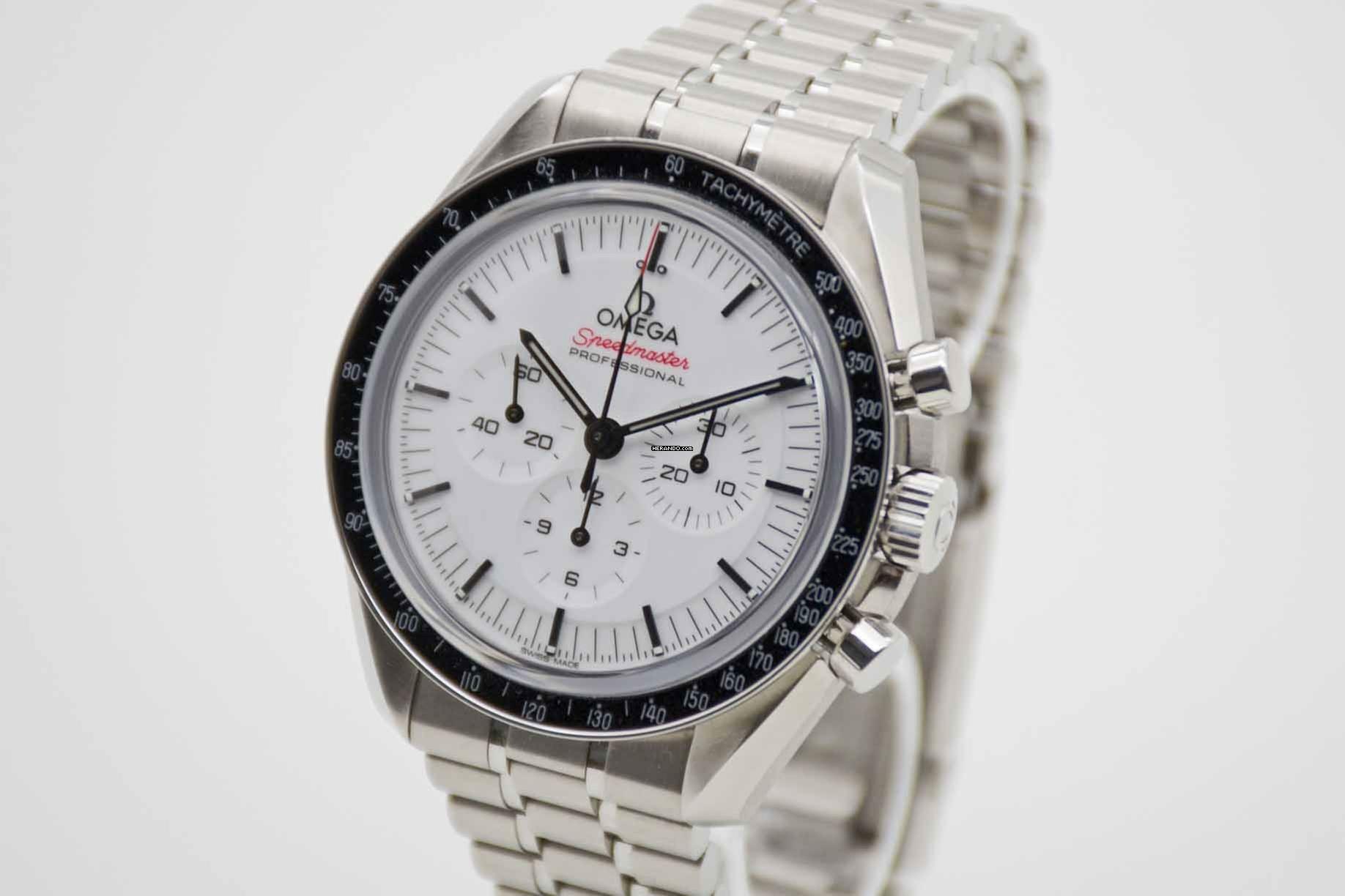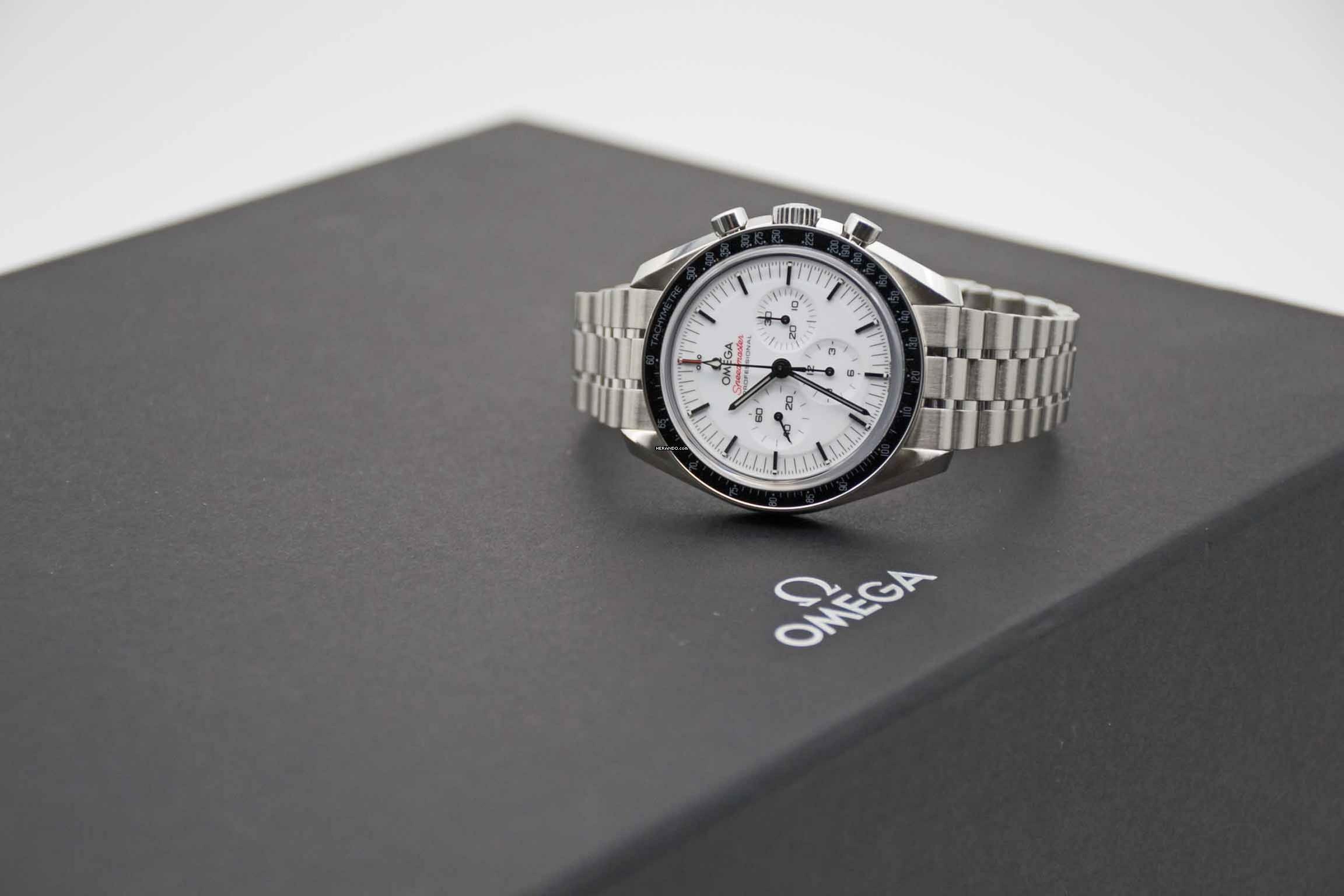 Speedmaster Professional Moonwatch White 310.30.42.50.04.001, 42 mm Gehäuse mit weißem Zifferblatt und Omega Edelstahlarmband.