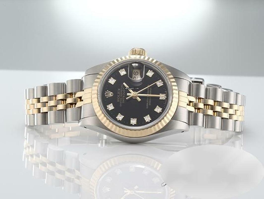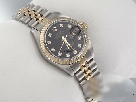Rolex Lady-Datejust Edelstahl Gelbgold 750 Diamanten Automatik 18kt Yellow Gold Stahl Stainless Steel Jubilé-band Chronometer Oyster Black Dial