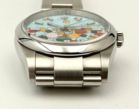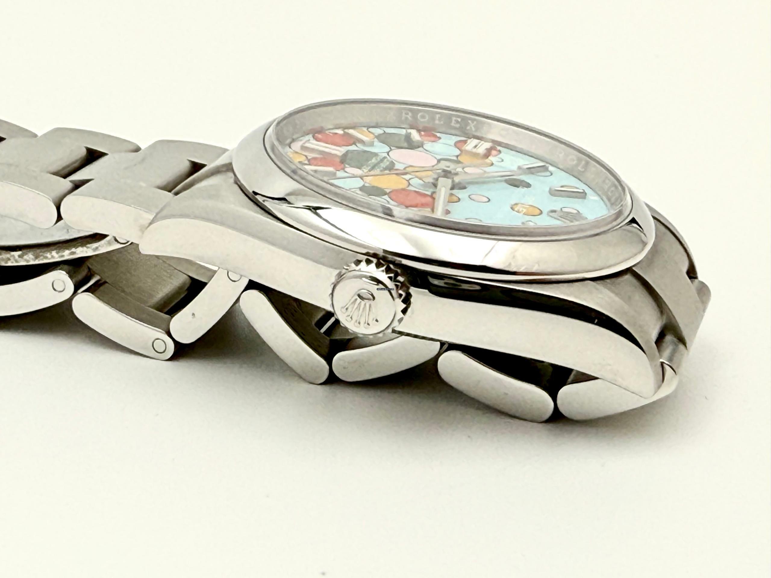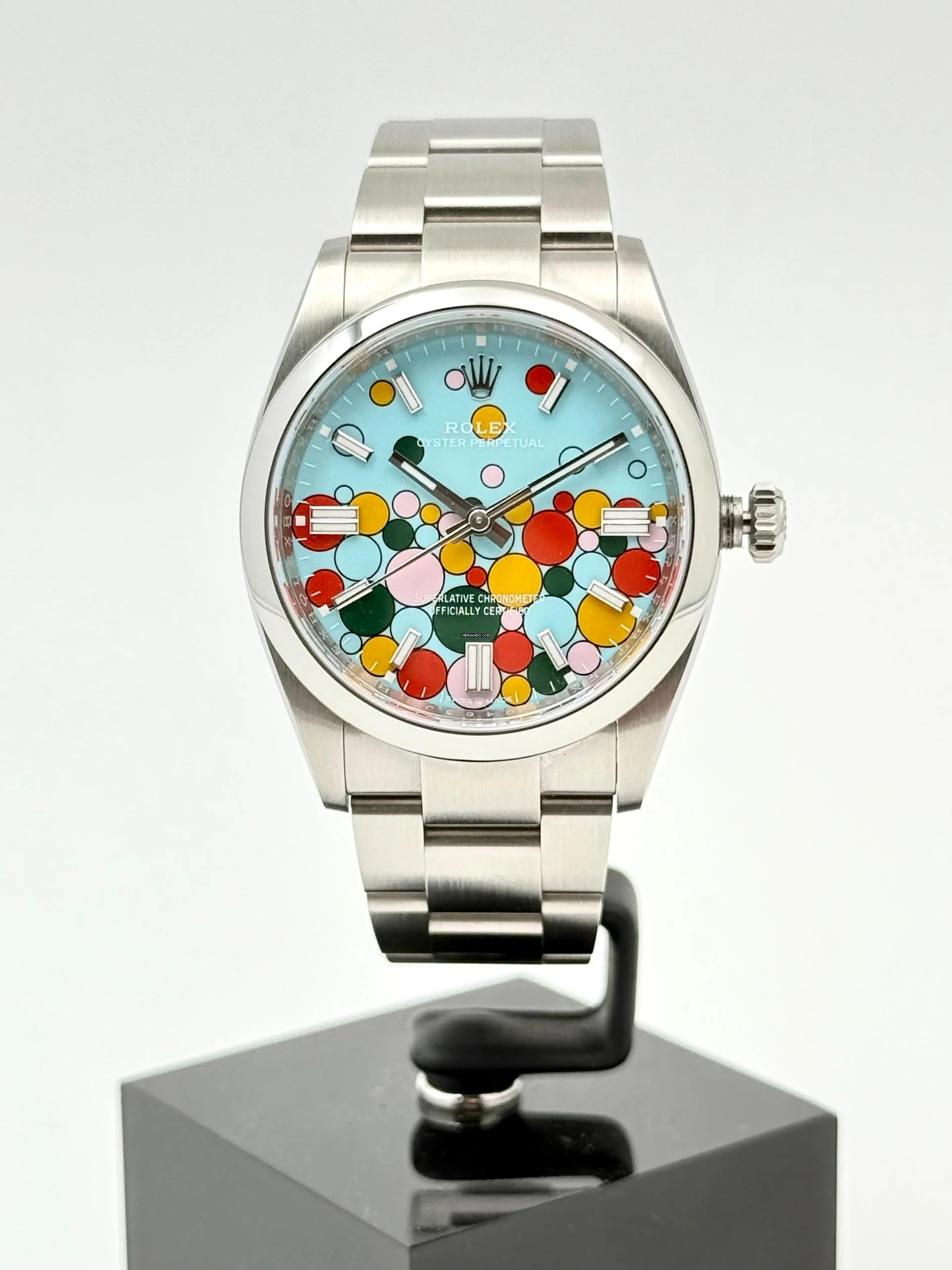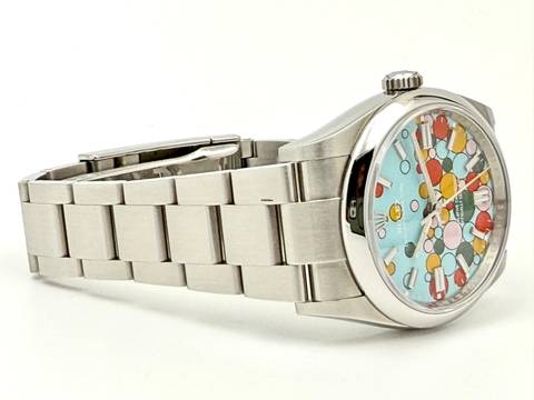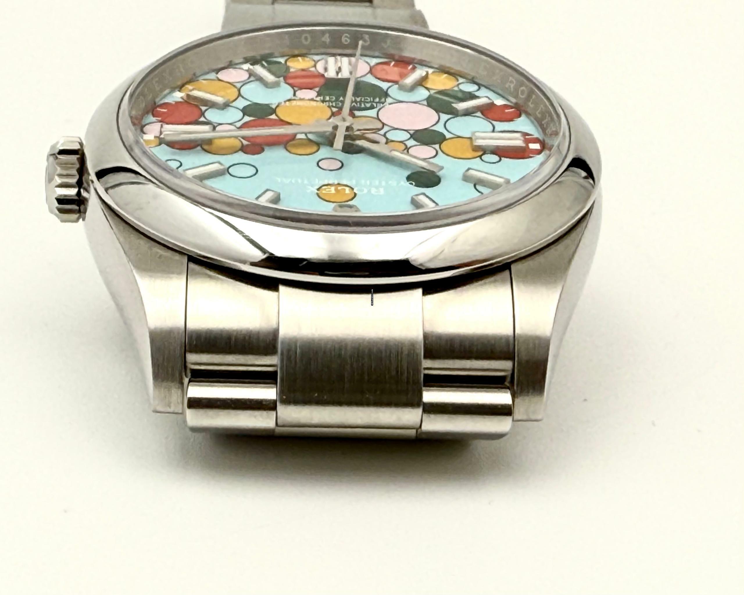 For sale is this nice Rolex Oyster Perpetual 36 mm. Steel with turquoise „celebration“ dial and Steel bezel on Oyster-Bracelet.