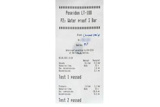 - Wasserdichtigkeit*: ja. Das Prüfprotokoll mit Prüfdruckangabe liegt bei.
