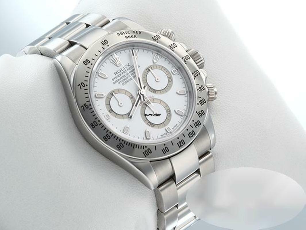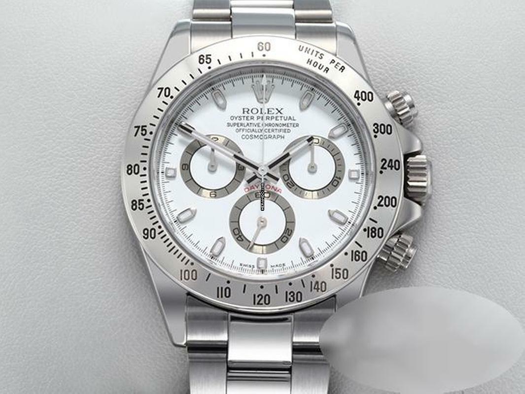 Diese wundervolle Rolex ist aus Edelstahl gefertigtFantastisches weisses Zifferblatt mit großen Stabindices
