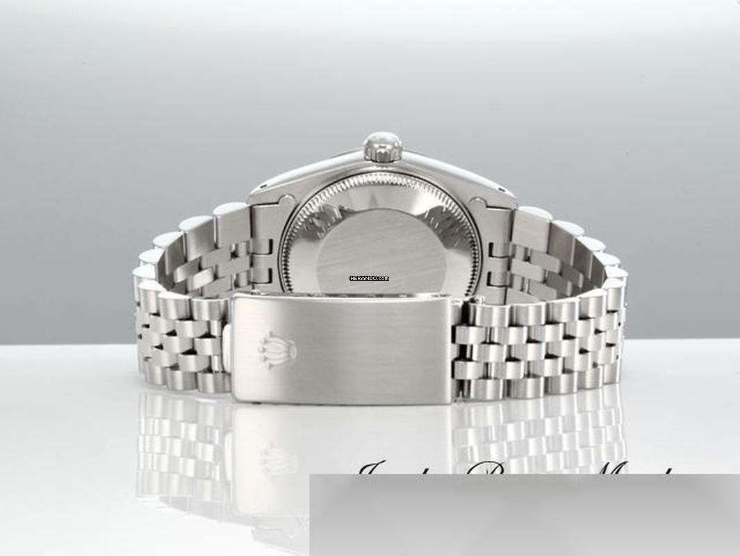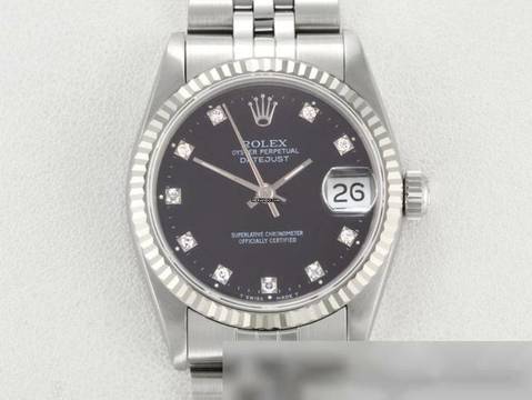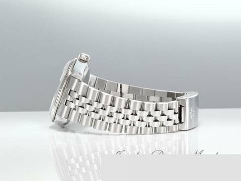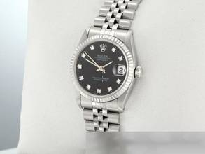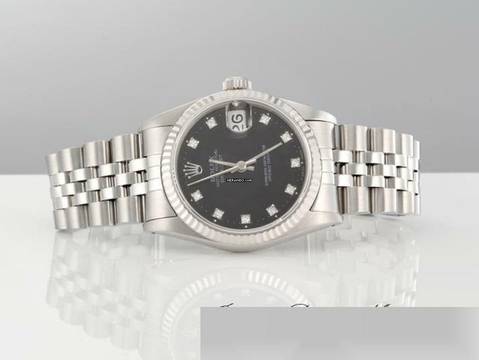Diese wunderschöne Rolex ist aus Edelstahl gefertigt und mit einer Lünette aus feinstem Weissgold 750 veredelt wordenFantastisches schwarzes Zifferblatt mit 10 strahlenen Diamanten besetzt, original von Rolex