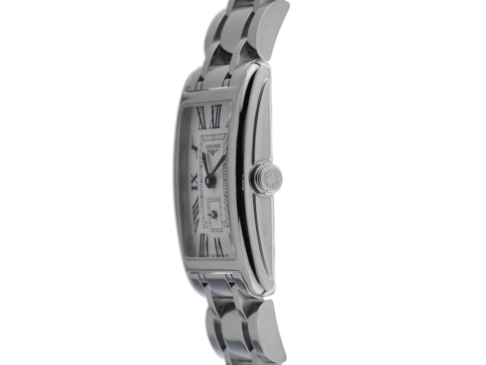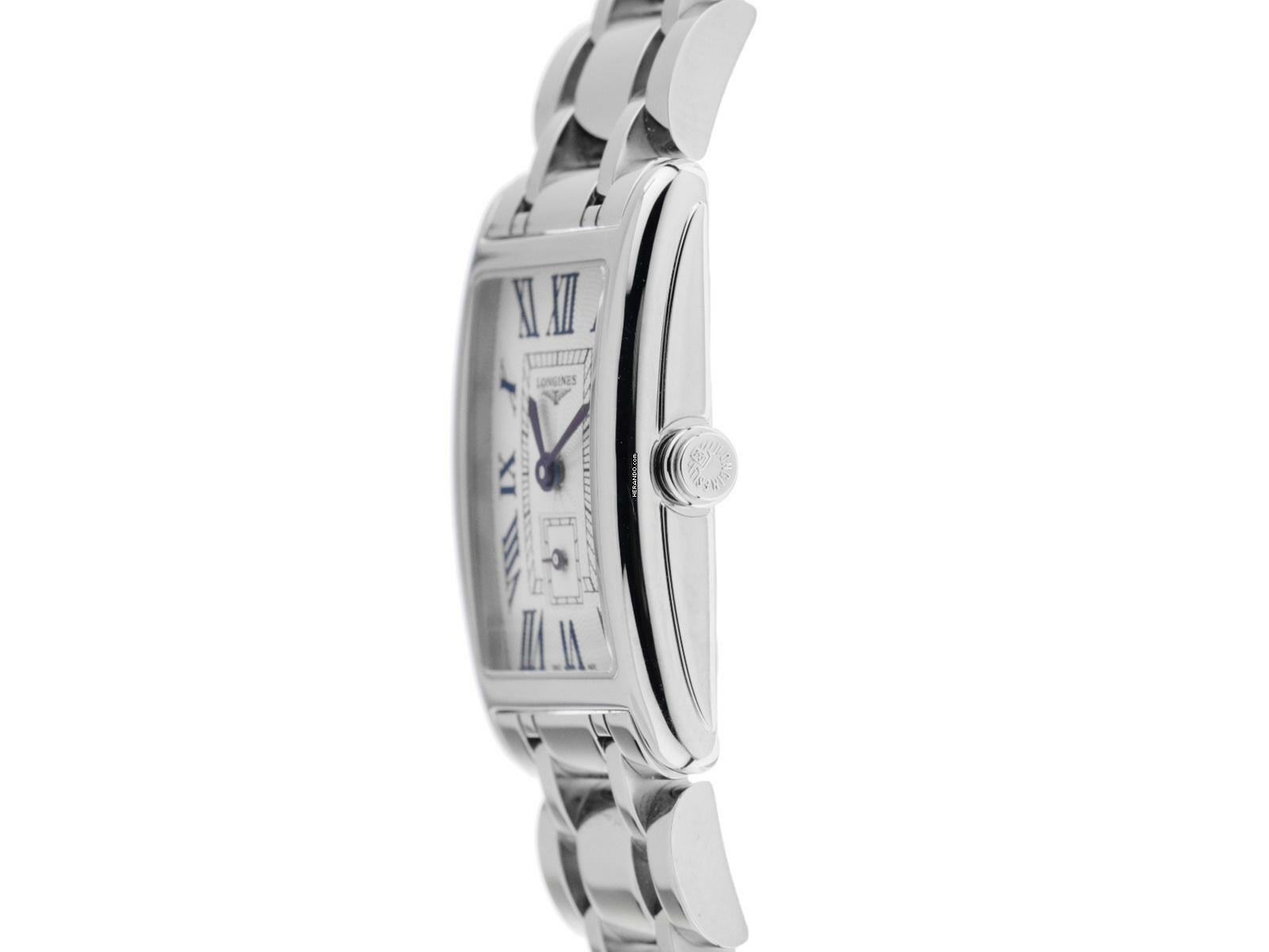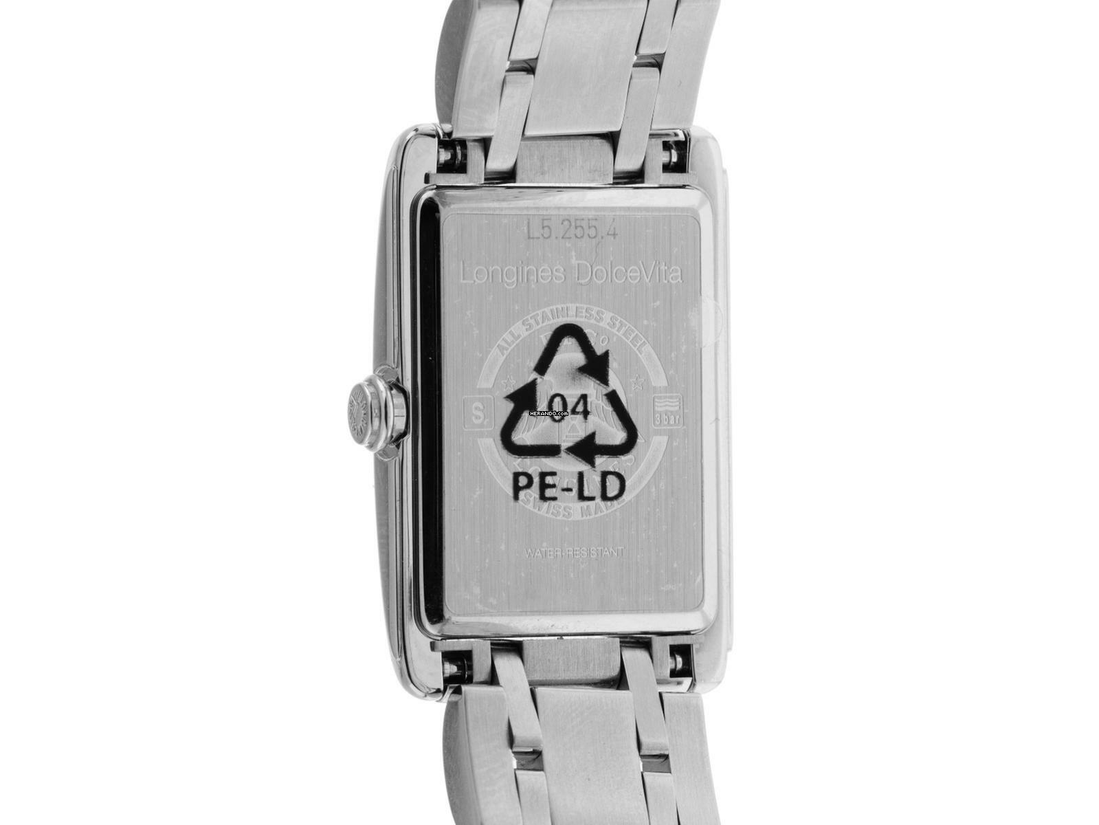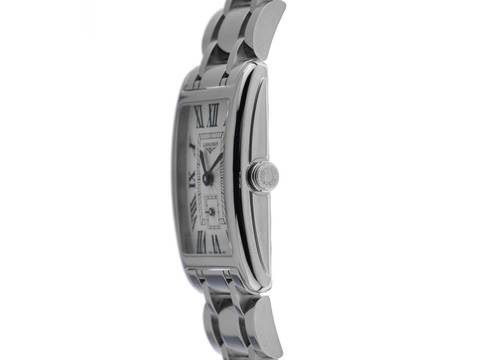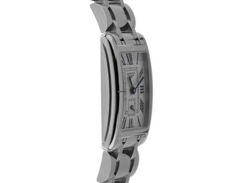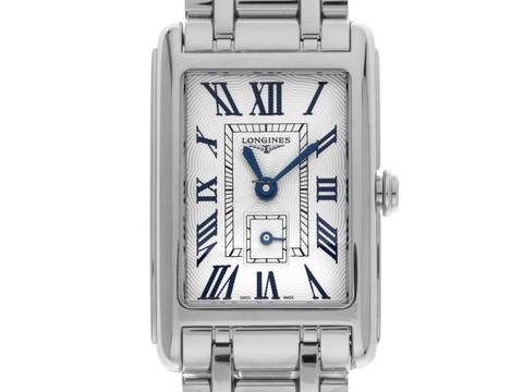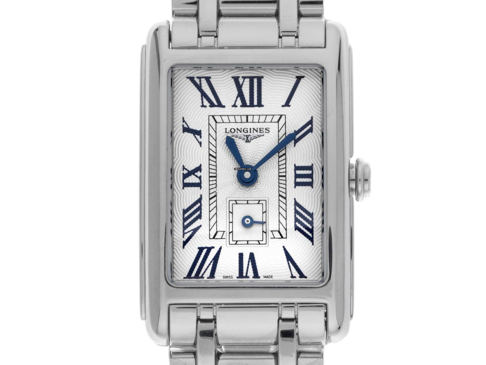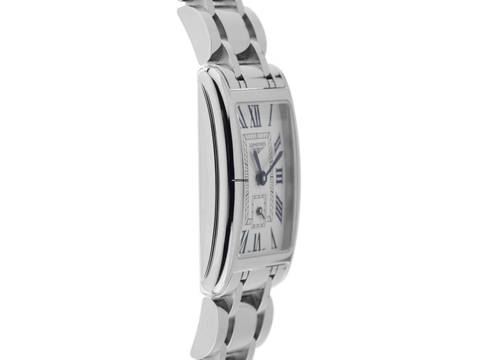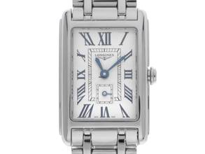 Longines Dolcevita Stahl Quarz Armband Stahl Gehäuse Edelstahl poliert, rechteckig, Gehäusemaße ohne Krone (L x B x H) 32 x 20,8 x 6,9mm. Lünette Edelstahl glatt und poliert. Armband Edelstahl poliert, verdeckte Doppelsicherheitsfaltschließe Edelstahl mit Hersteller-Logo. Zifferblatt silberfarben mit Fliquet Effekt, gebläuten römischen Ziffern und gebläuten Zeigern. Uhrwerk quarzgesteuert, Longines Kaliber L178. Anzeige von Stunde und Minute über Zeiger aus der Mitte, kleine Sekunde mit Sekundenstopp zur sekundengenauen Einstellung der Uhrzeit bei 6 Uhr. Saphirglas kratzfest. Krone geriffelt. Boden Edelstahl graviert. Gewicht der Uhr inklusive Armband 73g, Länge des Armbandes inklusive Gehäuse 175mm. Wasserdicht bis 3 ATM. Referenznummer: L5.255.4.71.6, ID: ST580622460925H-1550, Artikelnummer: 10000082339. Original Longines Box mit Umkarton und Garantie Papiere von September 2025, Full Set. Ungetragen. Lieferzeit sofort. Inklusive Uhrenpass mit einem Farbbild, der genauen Beschreibung sowie dem Wiederbeschaffungswert der Uhr über 1550,-€ und 1000 Tage Garantie ab Kaufdatum.