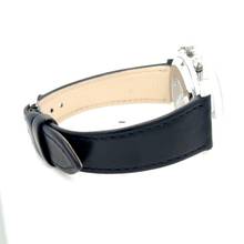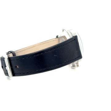Schwarzes Kalbslederarmband und Dornschließe aus Stahl.