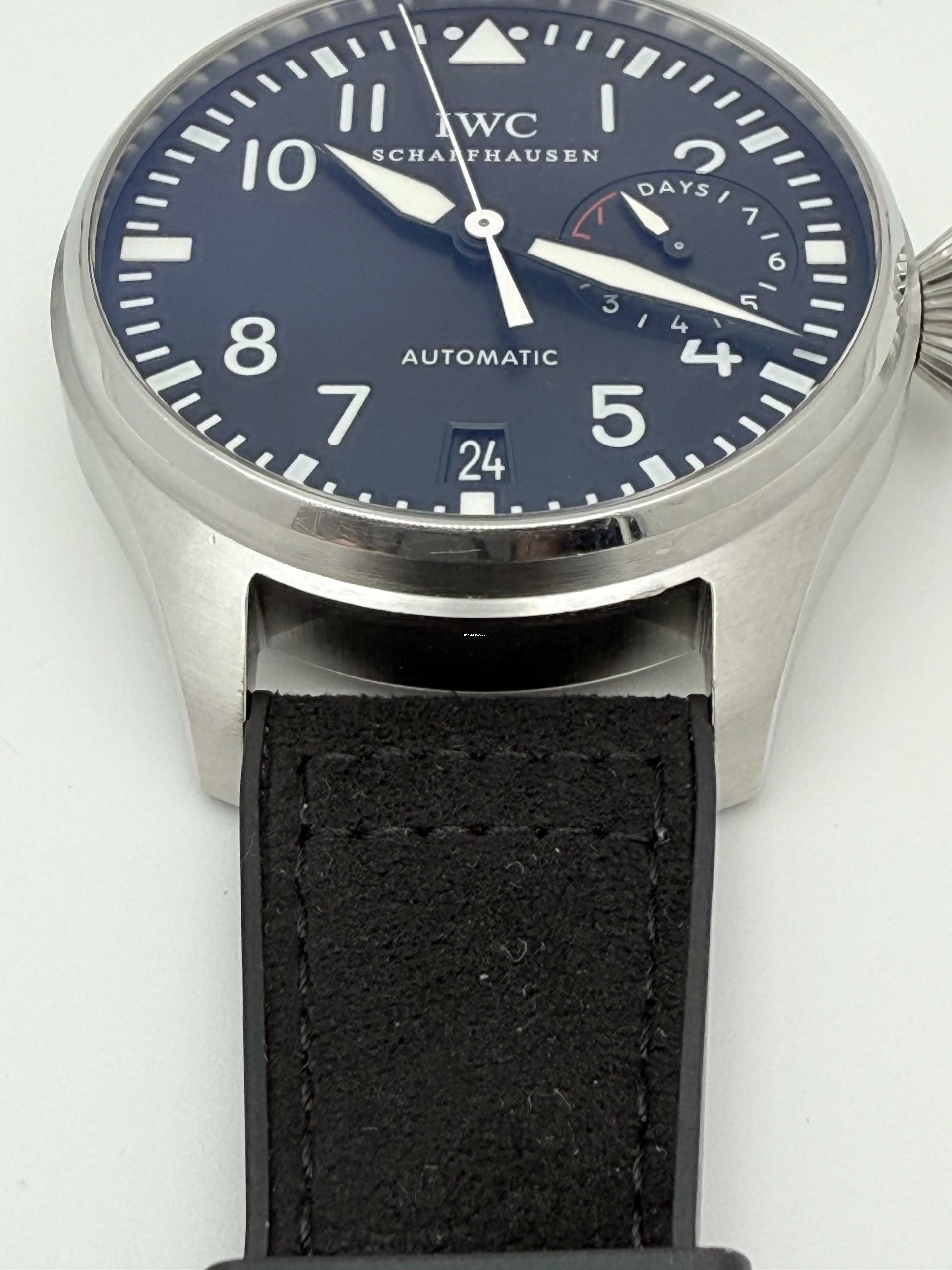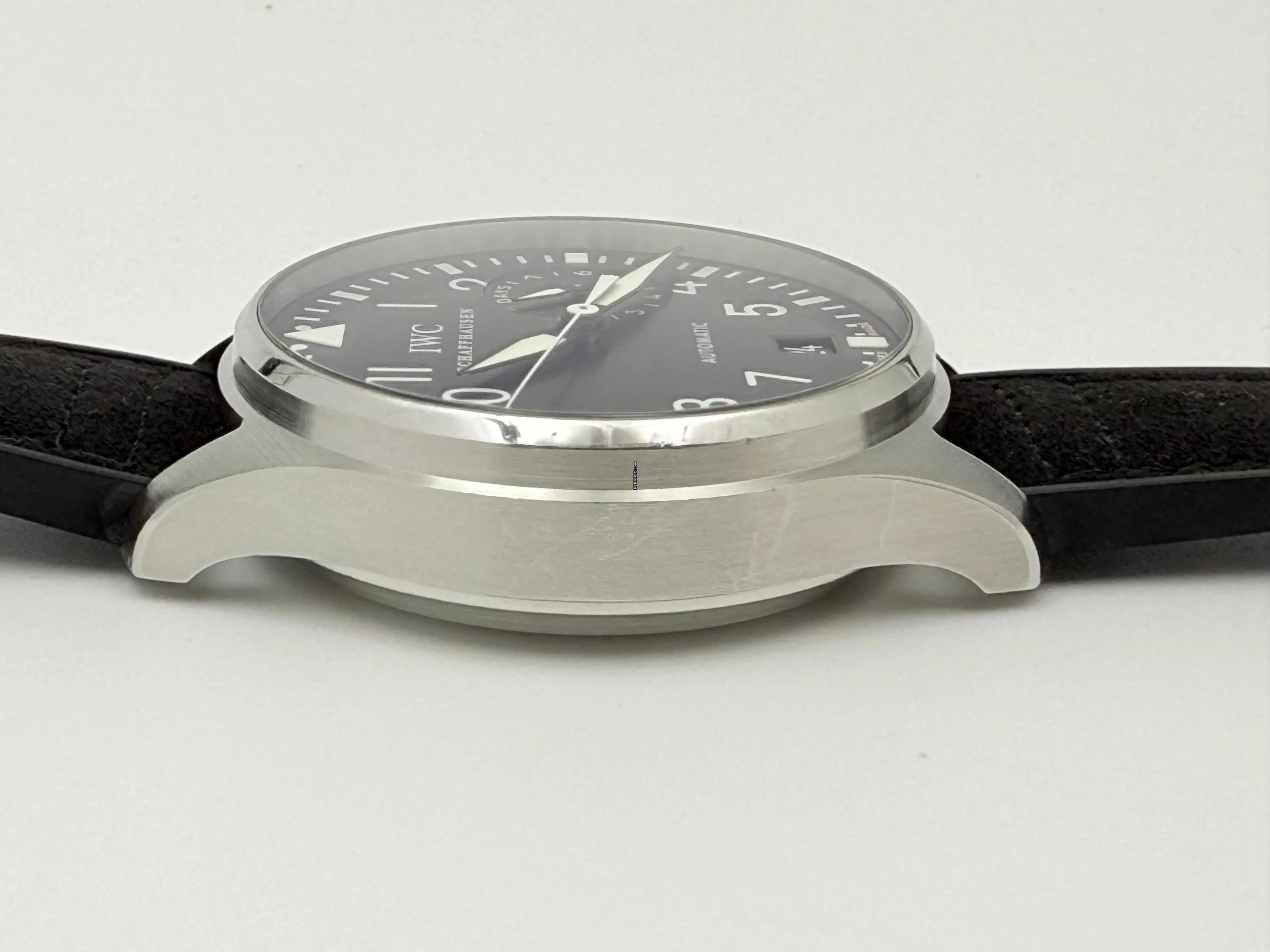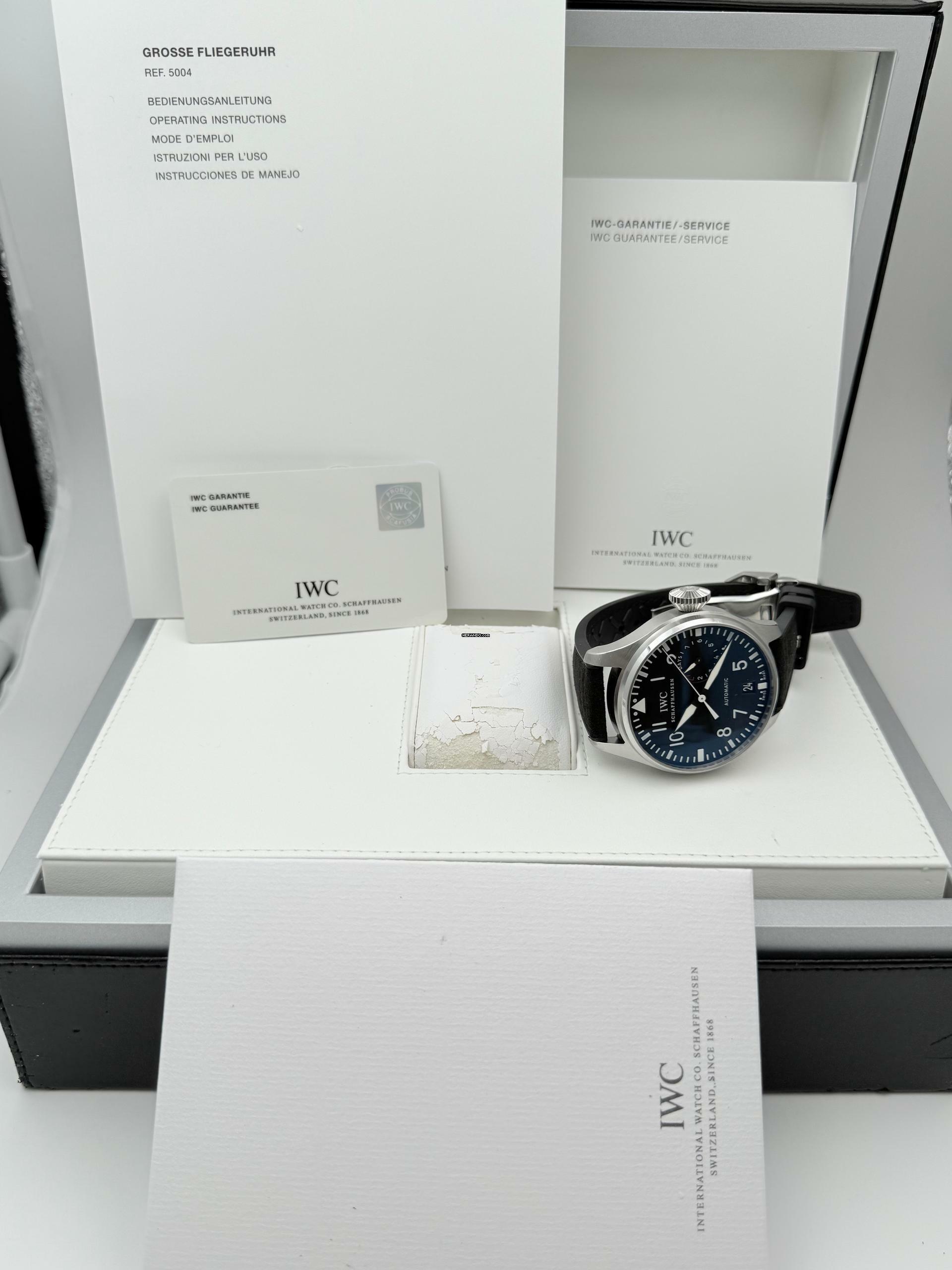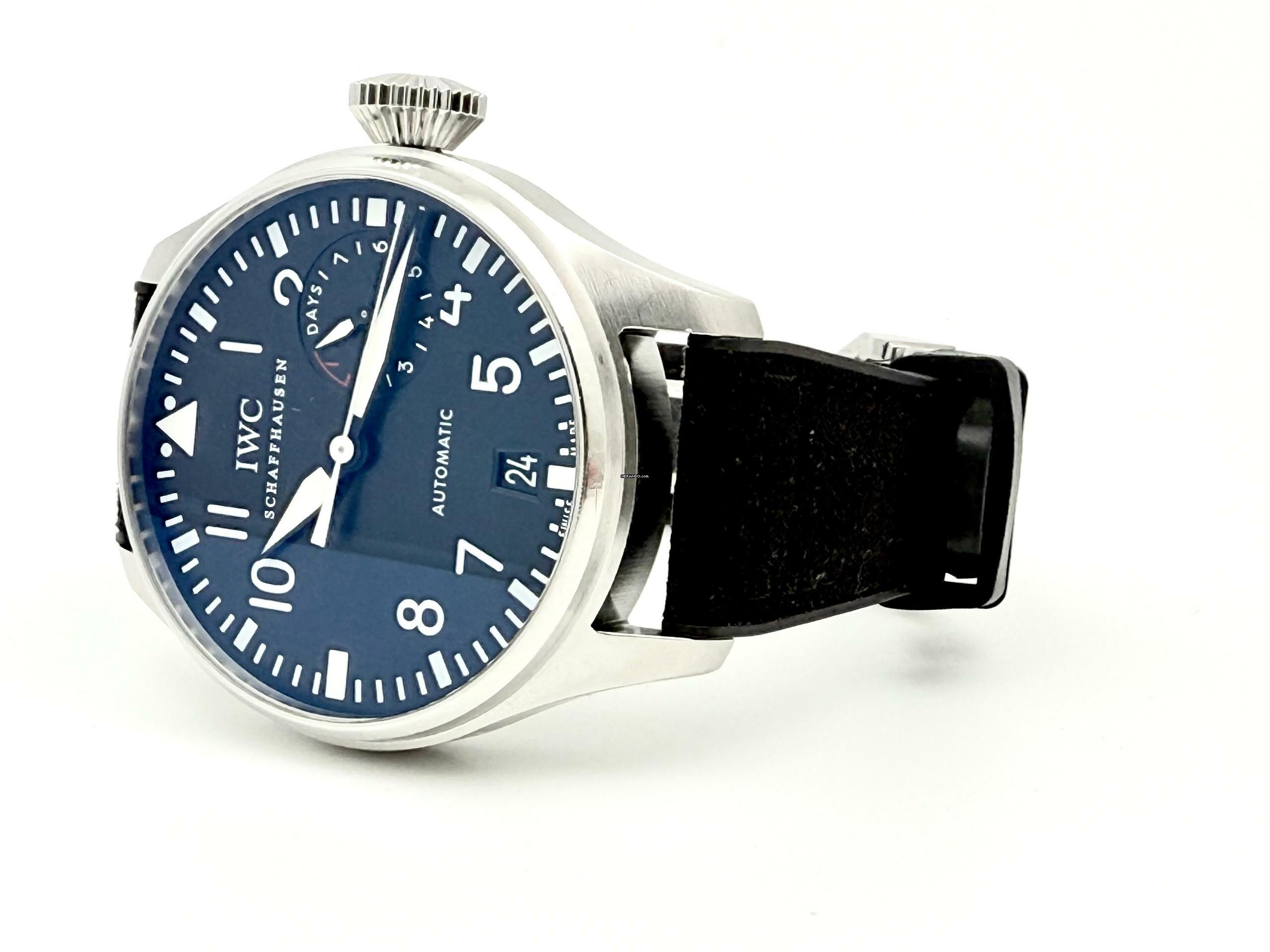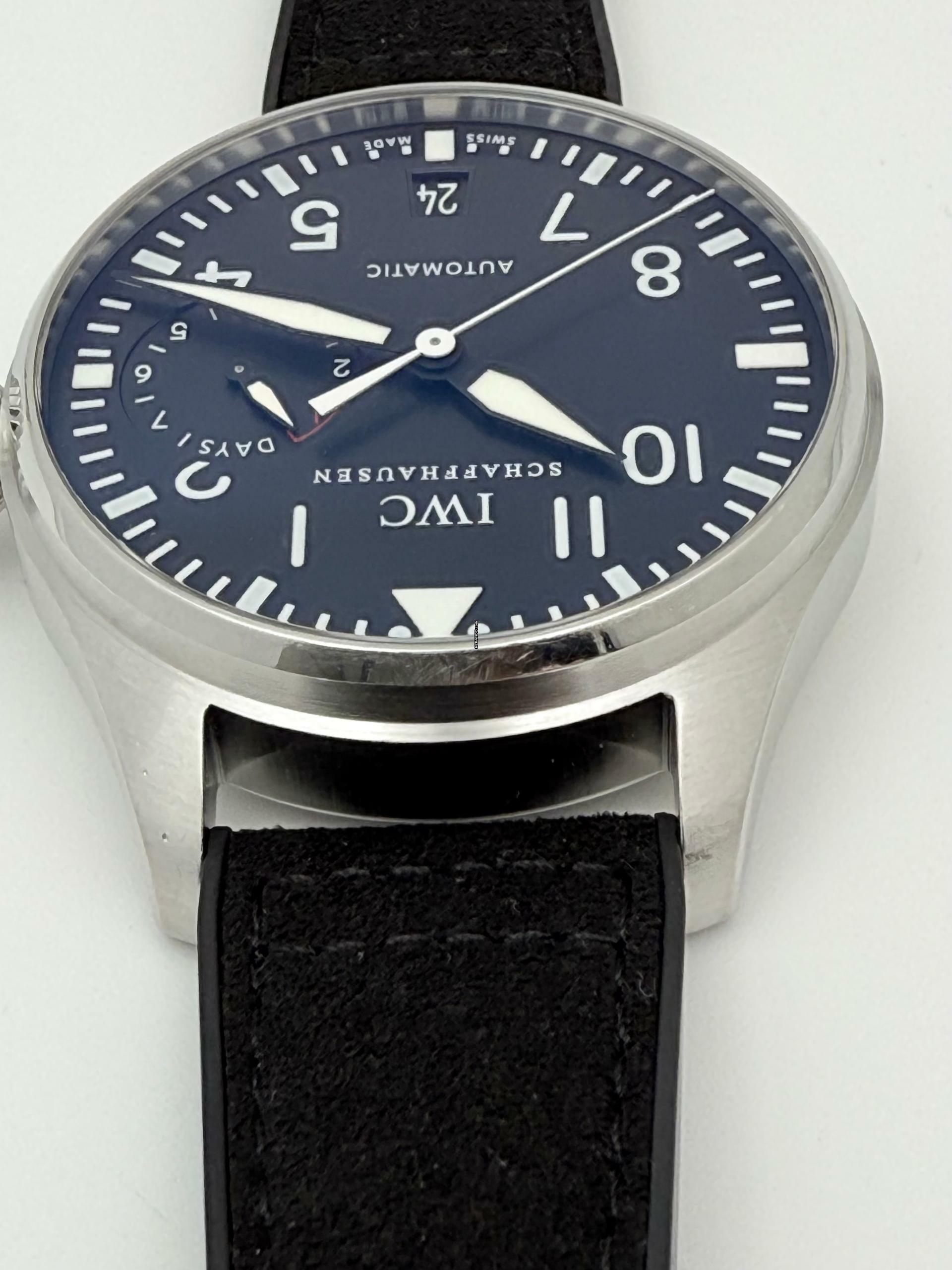 Zum Verkauf steht diese schöne IWC Big Pilot's Watch 7 Days 46 mm. in Stahl mit schwarzem Zifferblatt an einem Rauhleder-Kautschukband mit Faltschließe. Die Uhr befindet sich in einem optisch und technisch befridigendem Zustand mit normalen Gebrauchsspuren, dies sollte auf den Zoom-Bildern erkennbar sein!