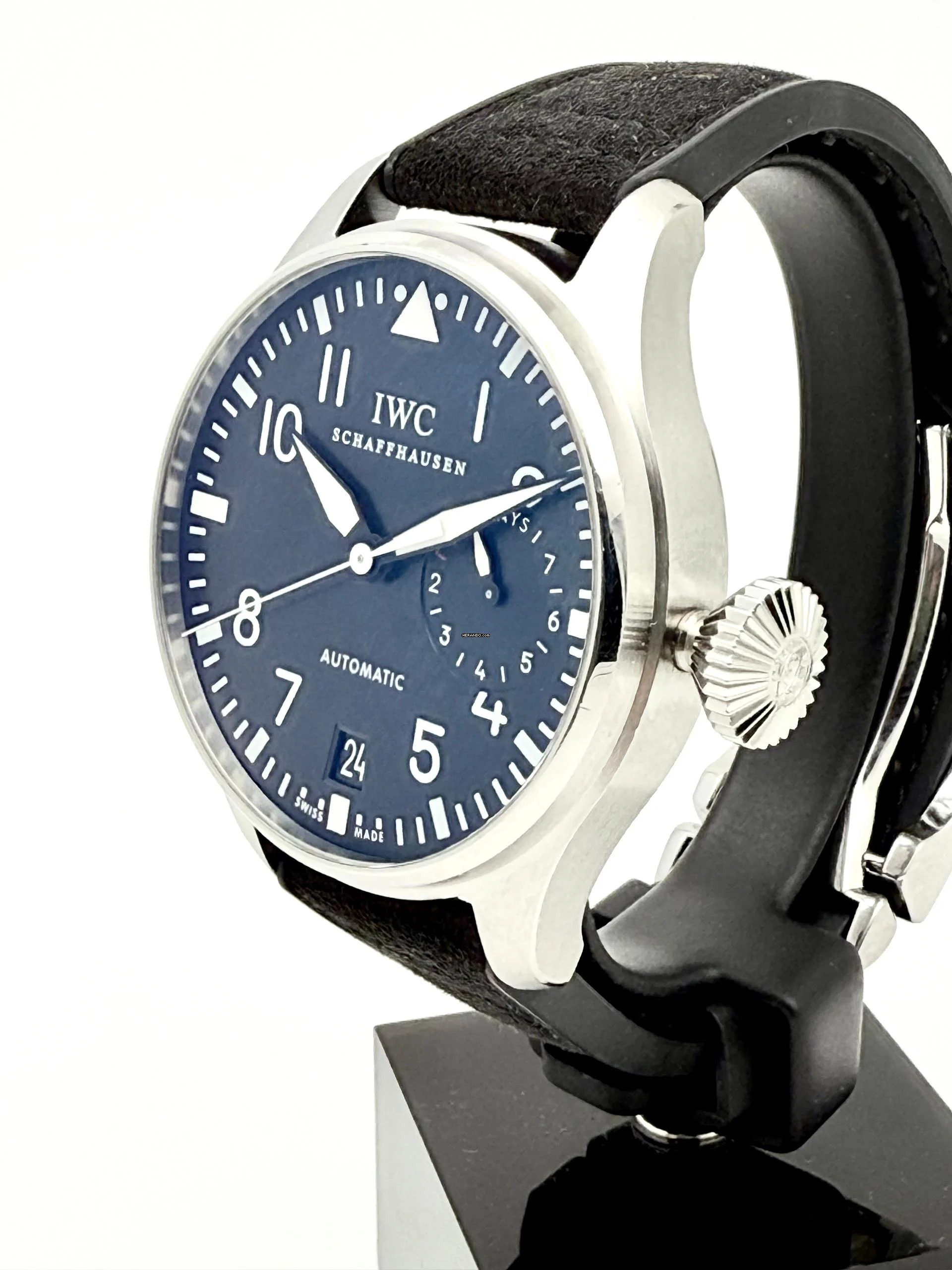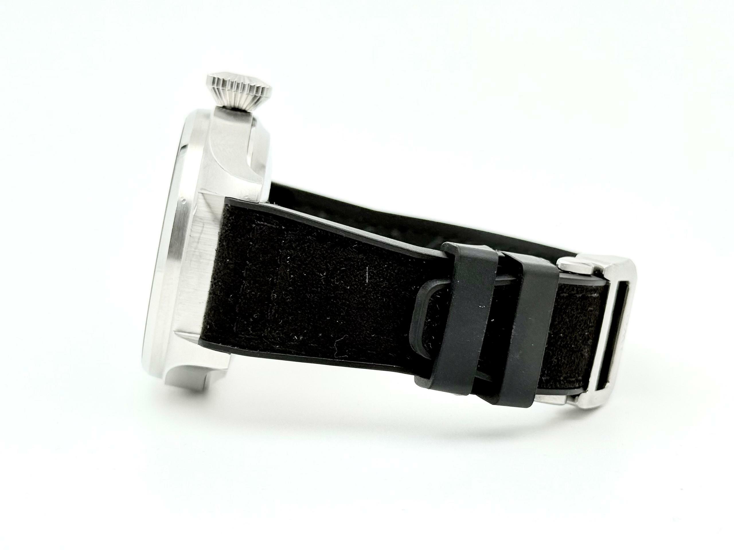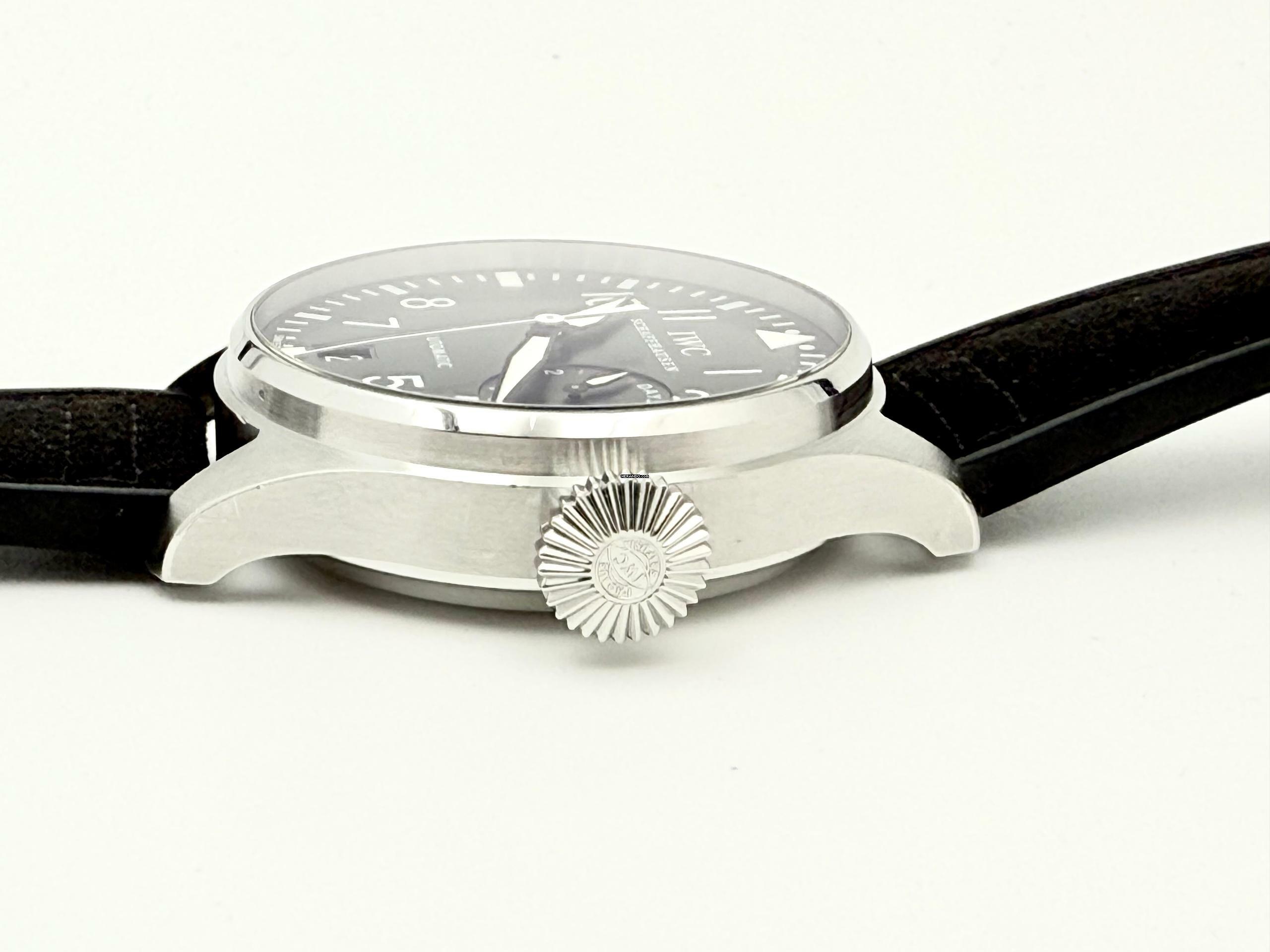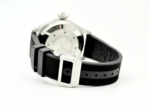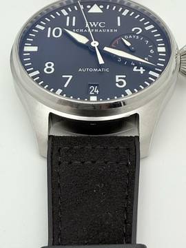 For sale is this nice IWC BigPilot's Watch 7 Day's 46 mm . Steel with a black dial on a rubber/leather strap with folded clasp.